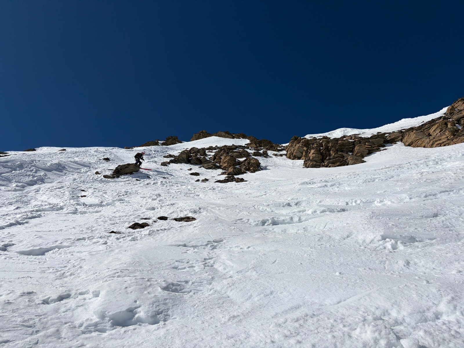 Itinéraire suivi : après le téléski, montée plus directe que la voie normale par un petit couloir sous la pointe du grand montet. Redescente en est par une pente assez raide au départ , en direction du col du montet.