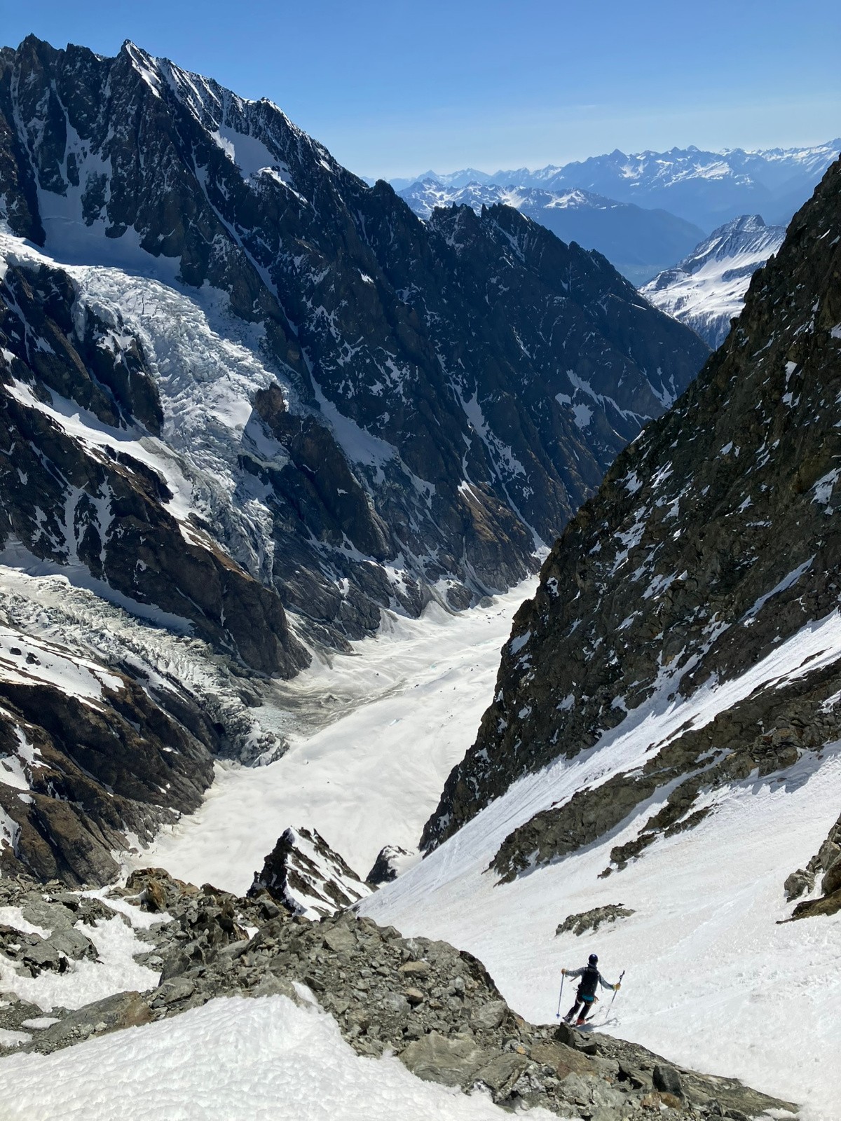 Descente 10h15 parfaite dans la rampe. C'est peut être la plus belle ligne dans ce niveau et ce style que j'ai faite ! Exceptionnelle par le ski, le panorama, et les différents couloirs. Un gros 5.1 plus 5.2 je pense.