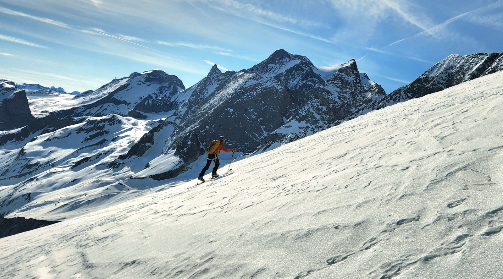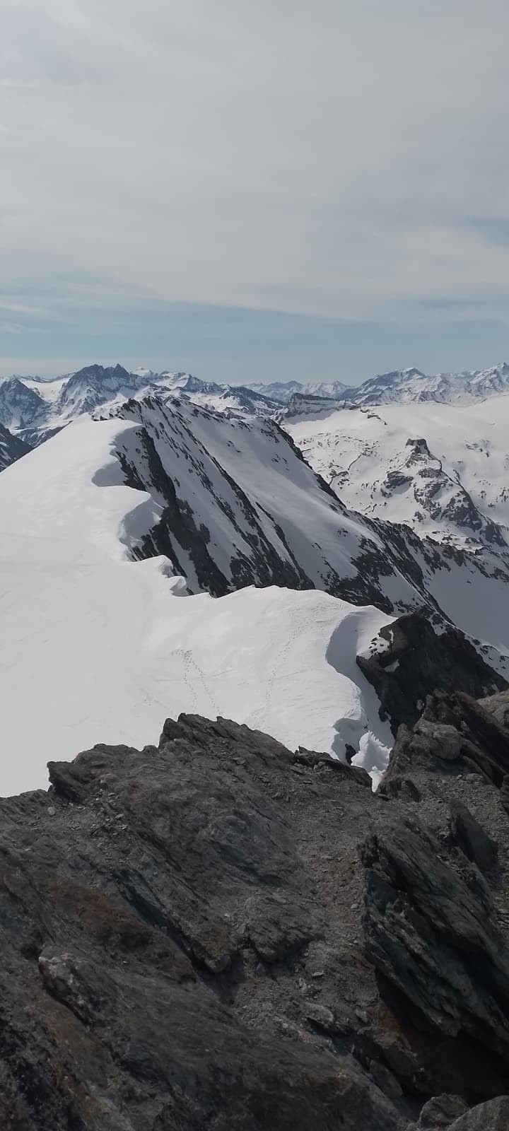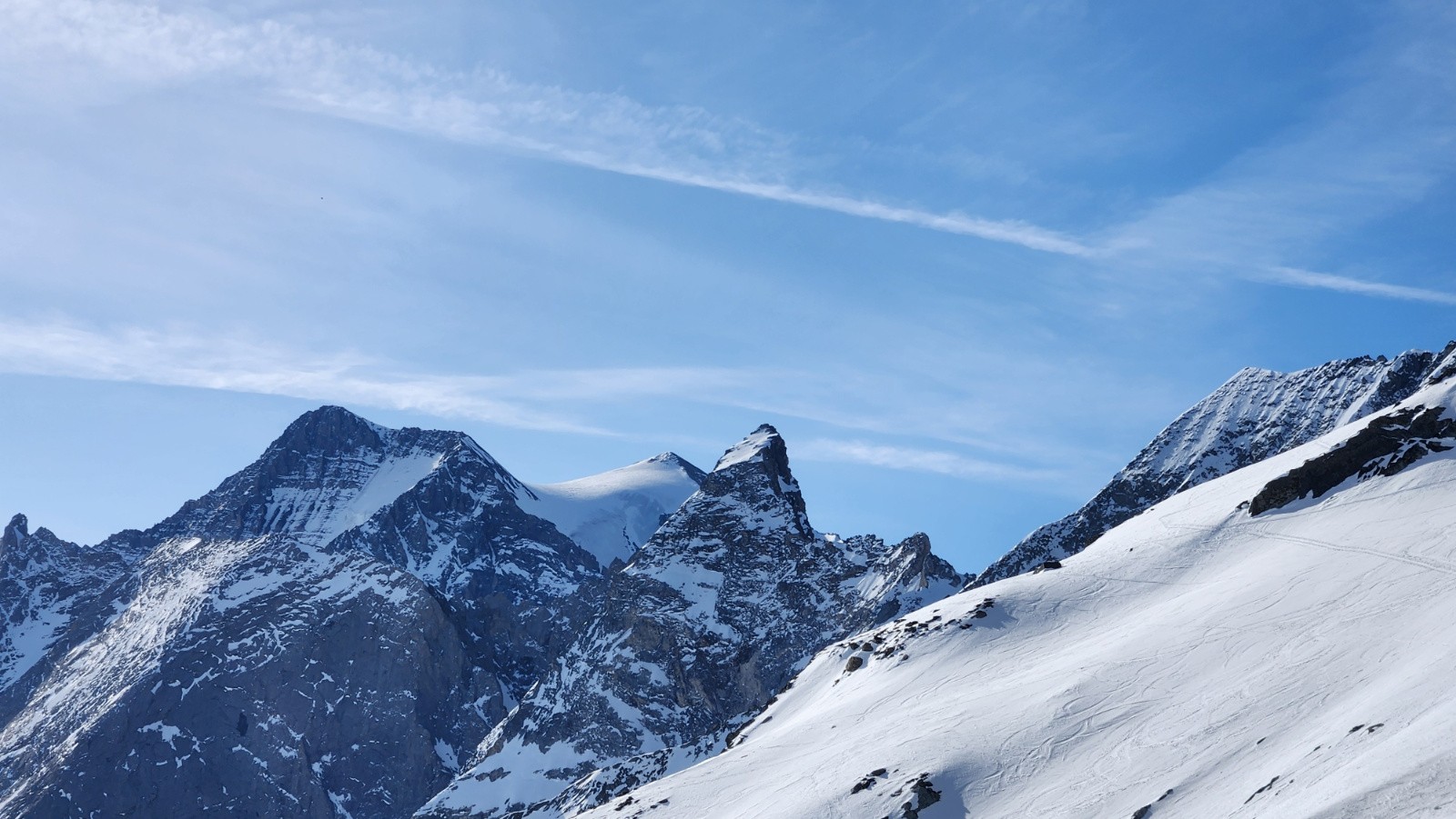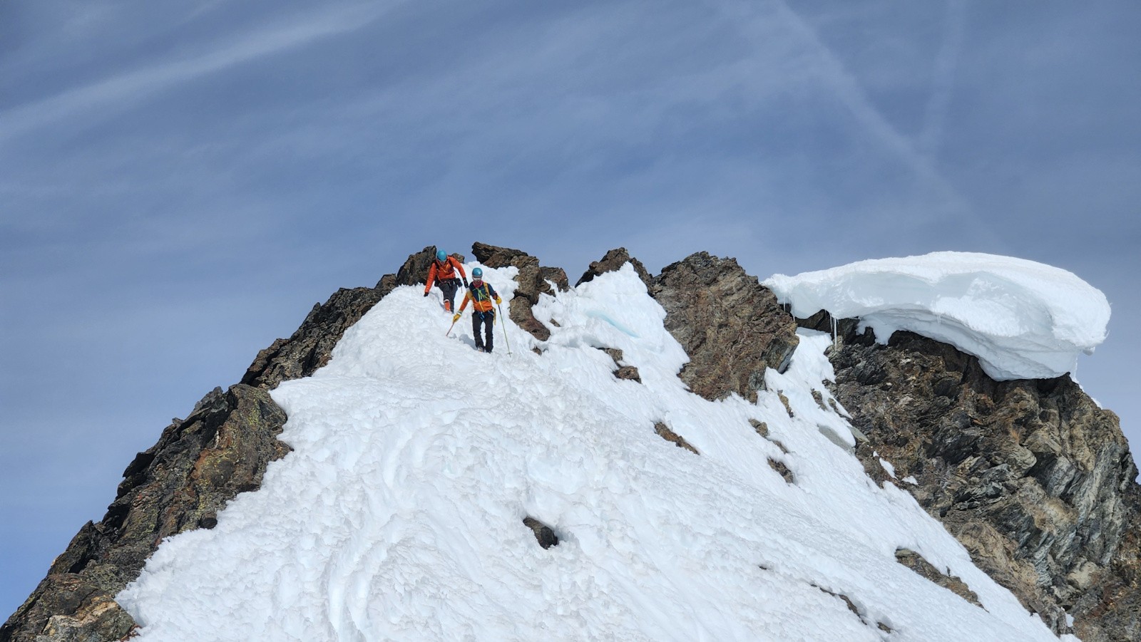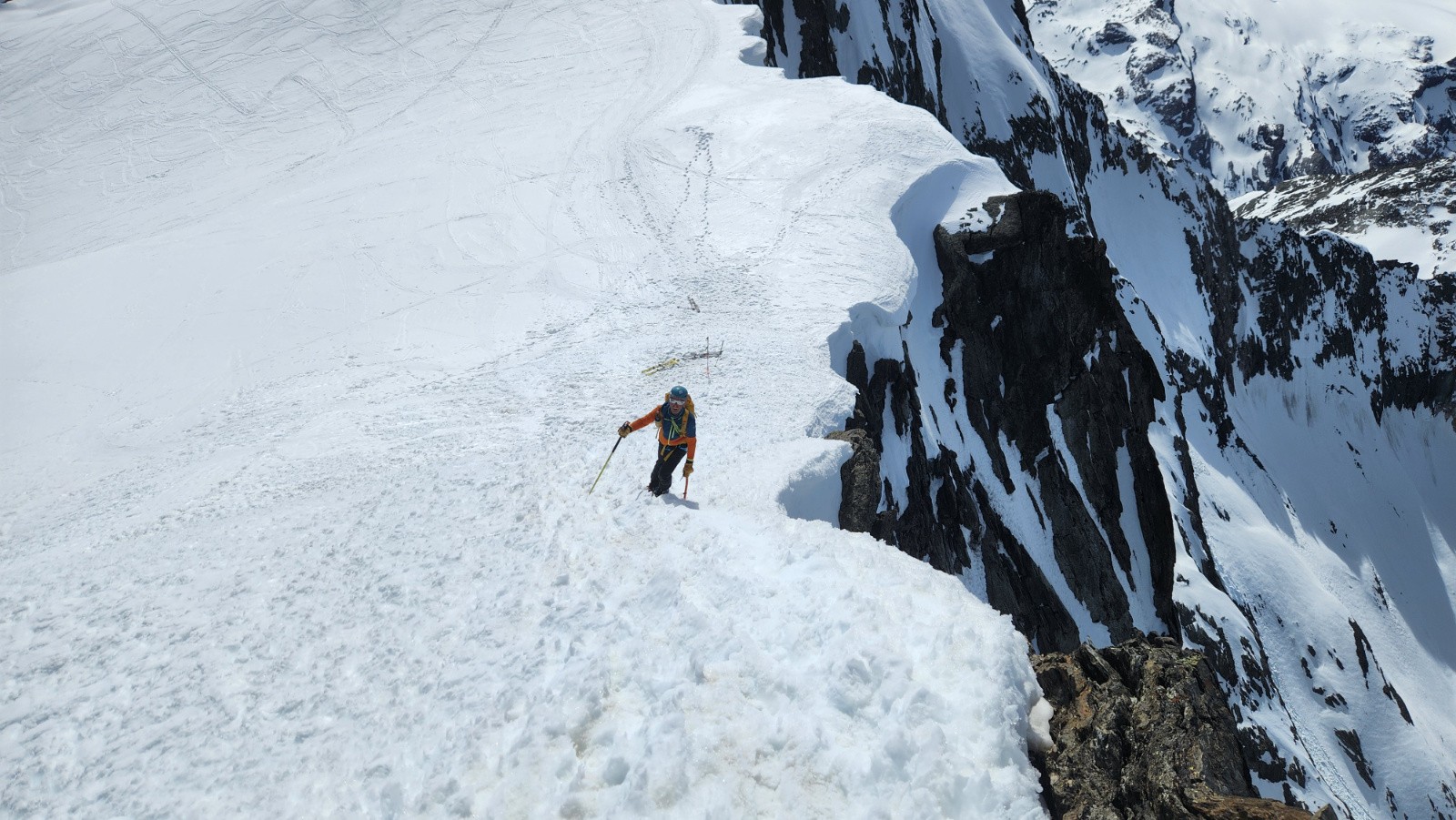 Ce matin, ça part vite. Le soleil nous réchauffe rapidement. Un aller-retour au sommet (attention à la corniche). Belle descente. Dans la partie la plus raide, le sluff a lissé la neige donc bien béton mais j'opte pour une grand traversée pour rejoindre les pentes en face bien chaudes et plus accueillantes. Au retour, je tente de trouver le passage qui permet de redescendre ski au pieds. Je pars un peu trop à gauche mais retrouve rapidement le bon passage. On insistera skis au pieds sur la neige, dans les arbres un peu à la Paul Bonhomme, la raideur et l'exposition en moins. Un bon week-end en montagne.