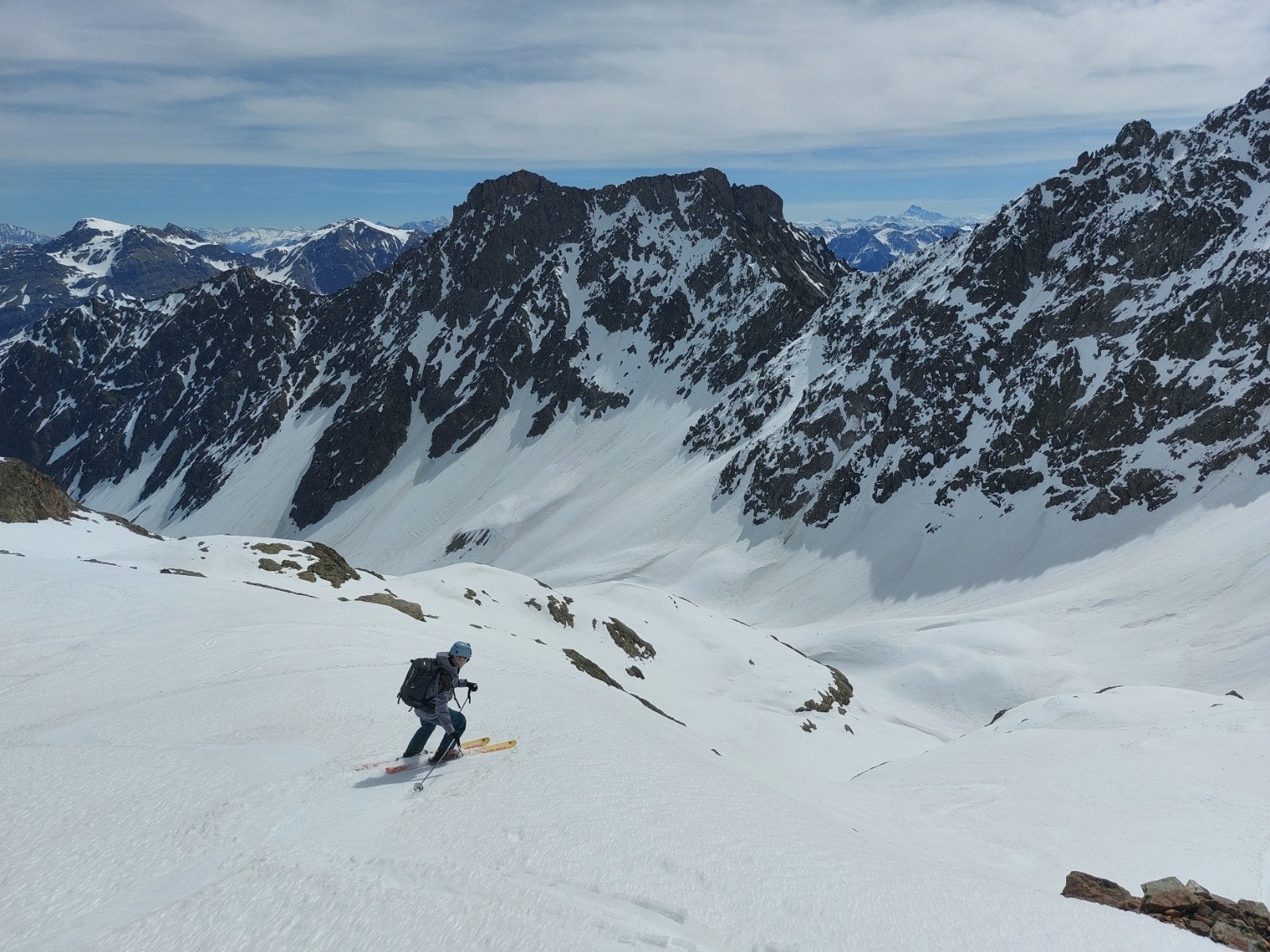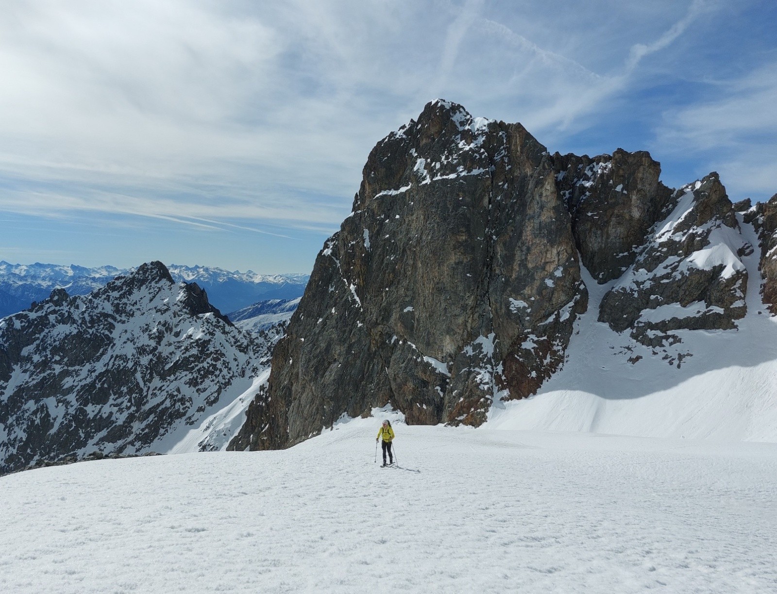Vallon de Clapouse et arrêt à 11h10 sur la crête qui sépare Clapouse et Rascrouset (3170m) par sécurité nivo-horaire