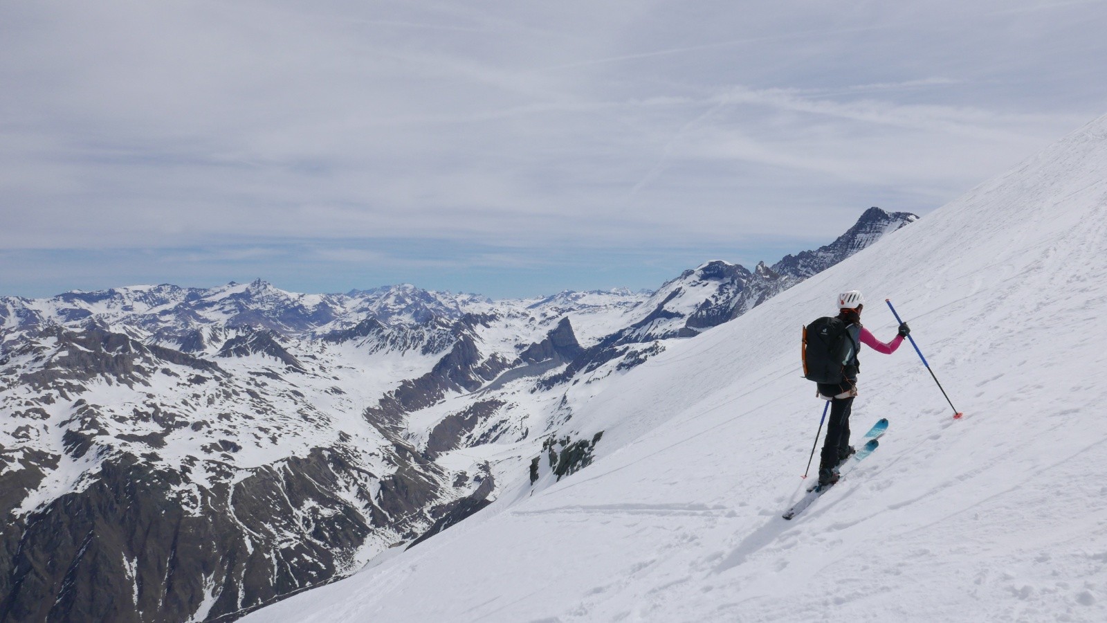 On ne s'attarde pas trop et on descend. La neige est bonne et ça s'enchaîne bien. Pour profiter de la bonne neige, on décide de ne pas remonter au col des vornets et on poursuit la descente.