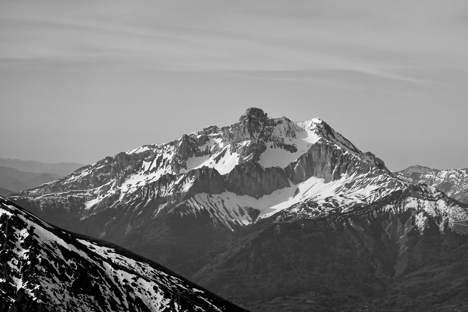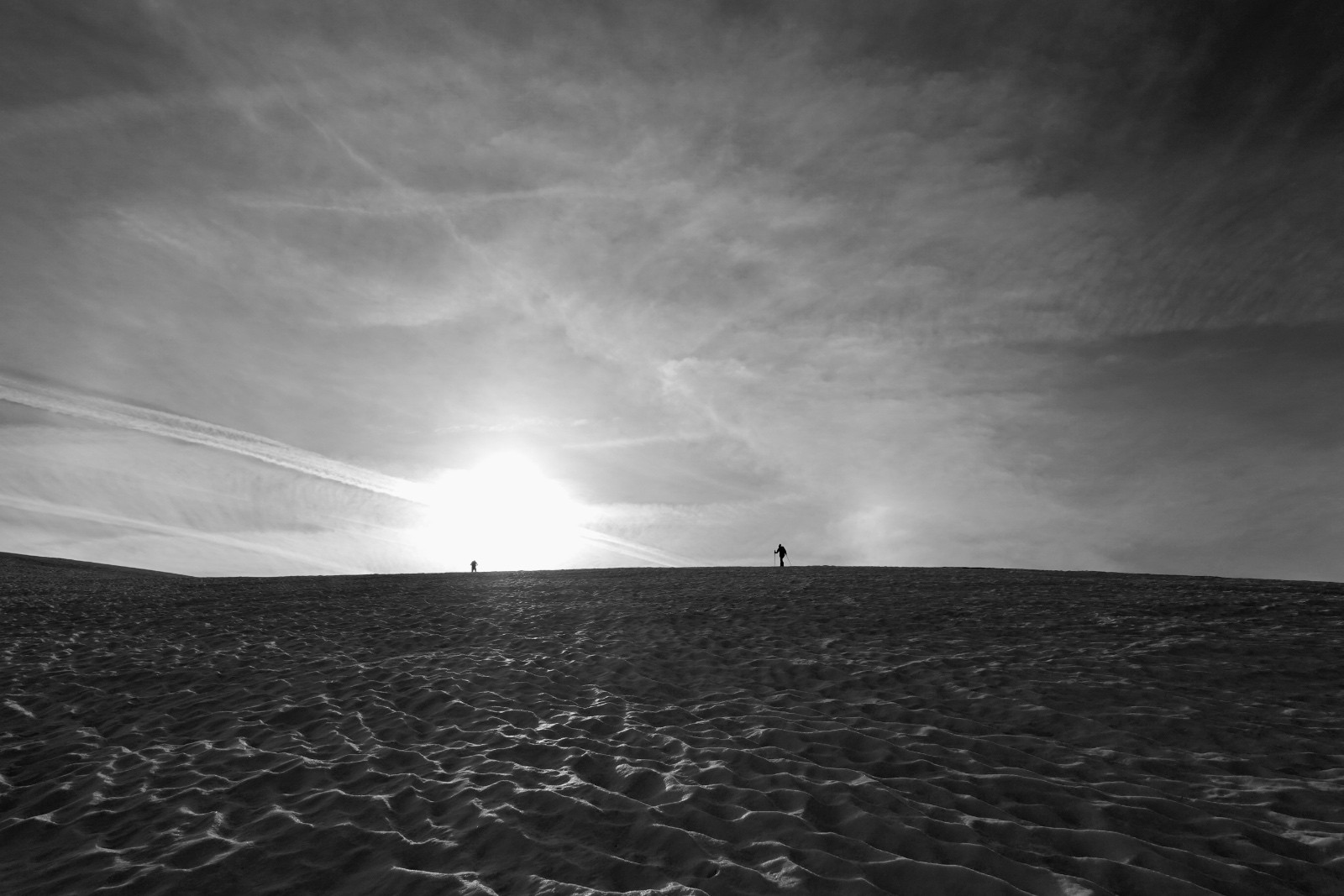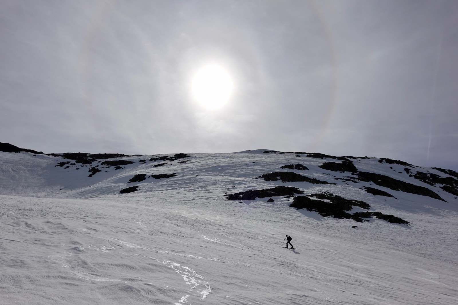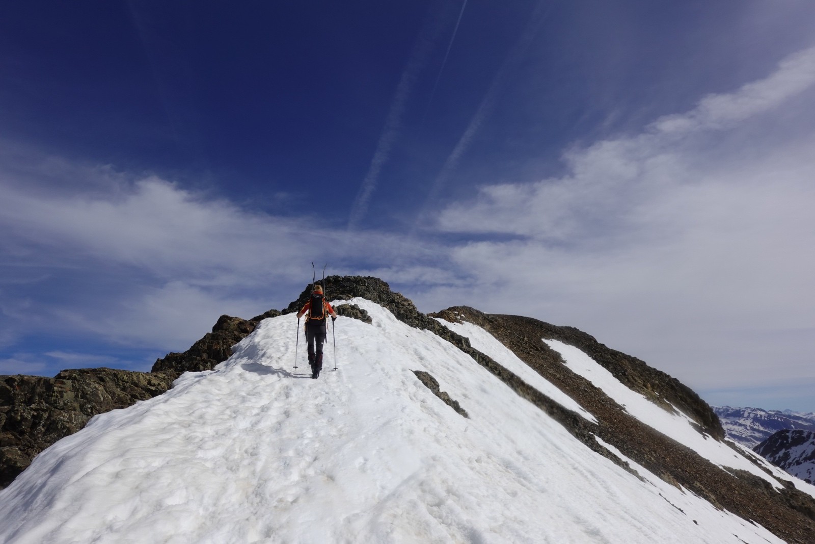 Va pour le Taillefer donc, en mode à la carte : on a convenu qu'on aviserait les pentes à skier selon les conditions, et c'est donc ce qu'on a fait : on shunte la crête de la Croix du Sergent Pinelli qui nous inspire moyen, on délaisse la Combe de l'Emay qui a trop de relief et est en partie à l'ombre, et on monte directement au Taillefer. Du sommet, la Combe des Ramays a l'air bonne, on décide de la descendre jusqu'à ce qu'on n'ait plus envie, c'est ce qu'on a fait. Et c'est une Cec très en forme qui imprime le tempo, quand on respire ça va mieux !