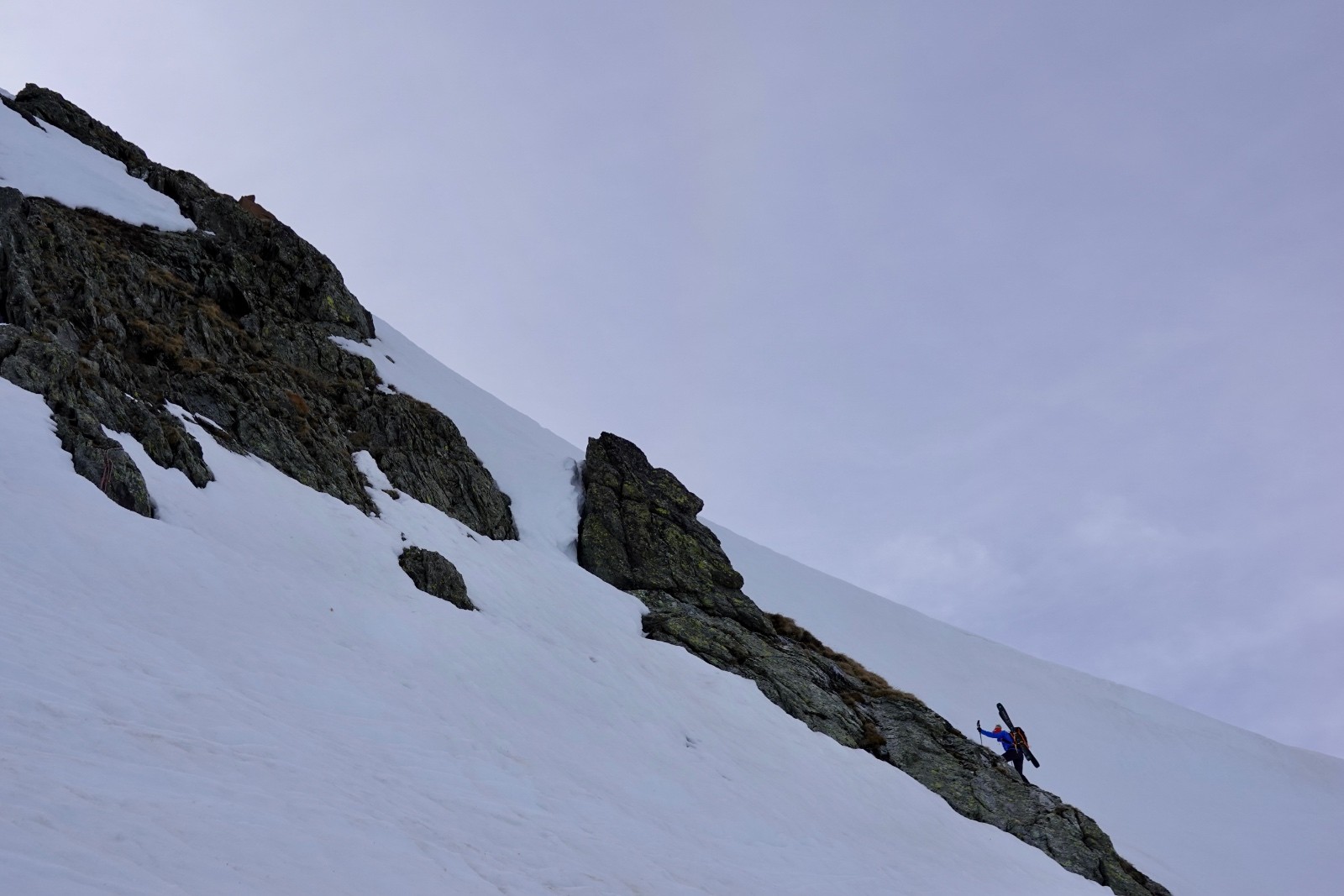 Remontée de nouveau pour basculer sur Poursollet, puis longue marche sur la route (au départ en peaux, mais la route est rapidement déneigée).