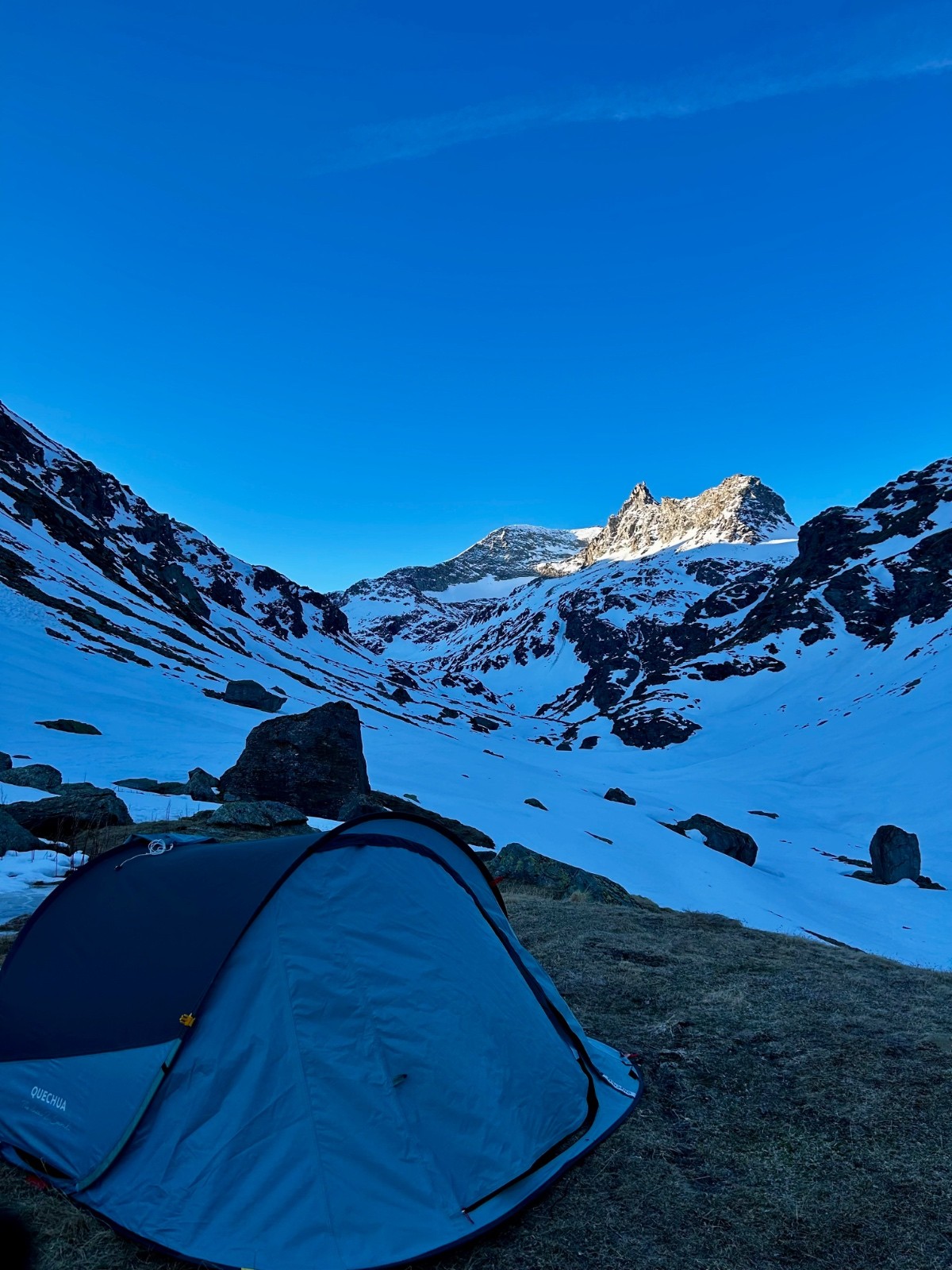 Après une super nuit en tente sous un ciel étoilé sublime, on aide au refuge le matin puis on part skier une face ouest