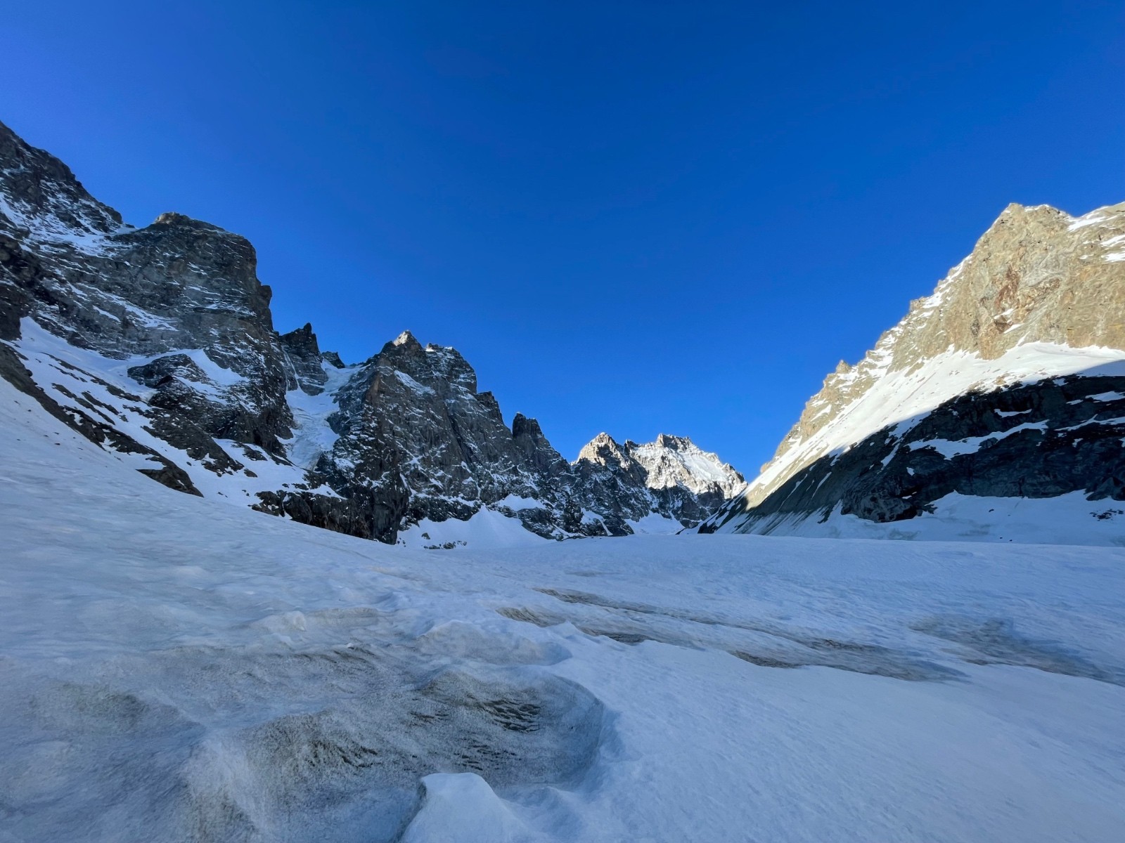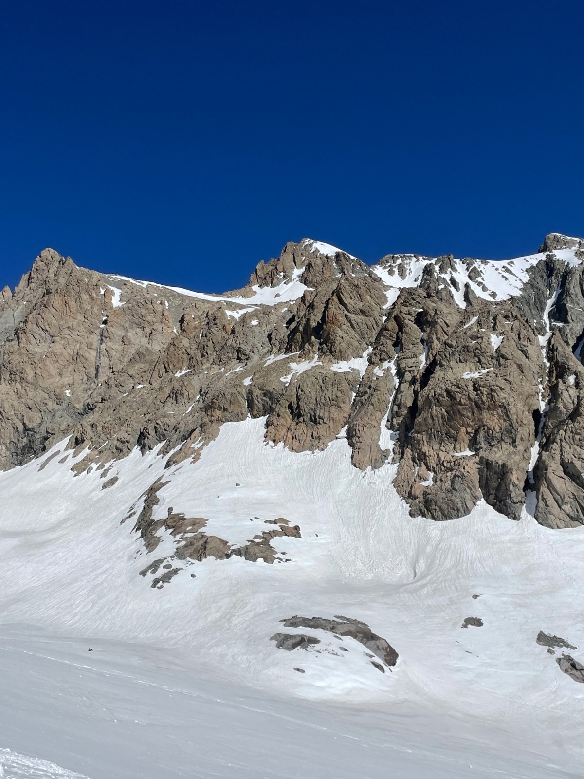 Descente à 11h de l’ailefroide, béton dans la facette ouest sous la banane mais moquette tout le long !