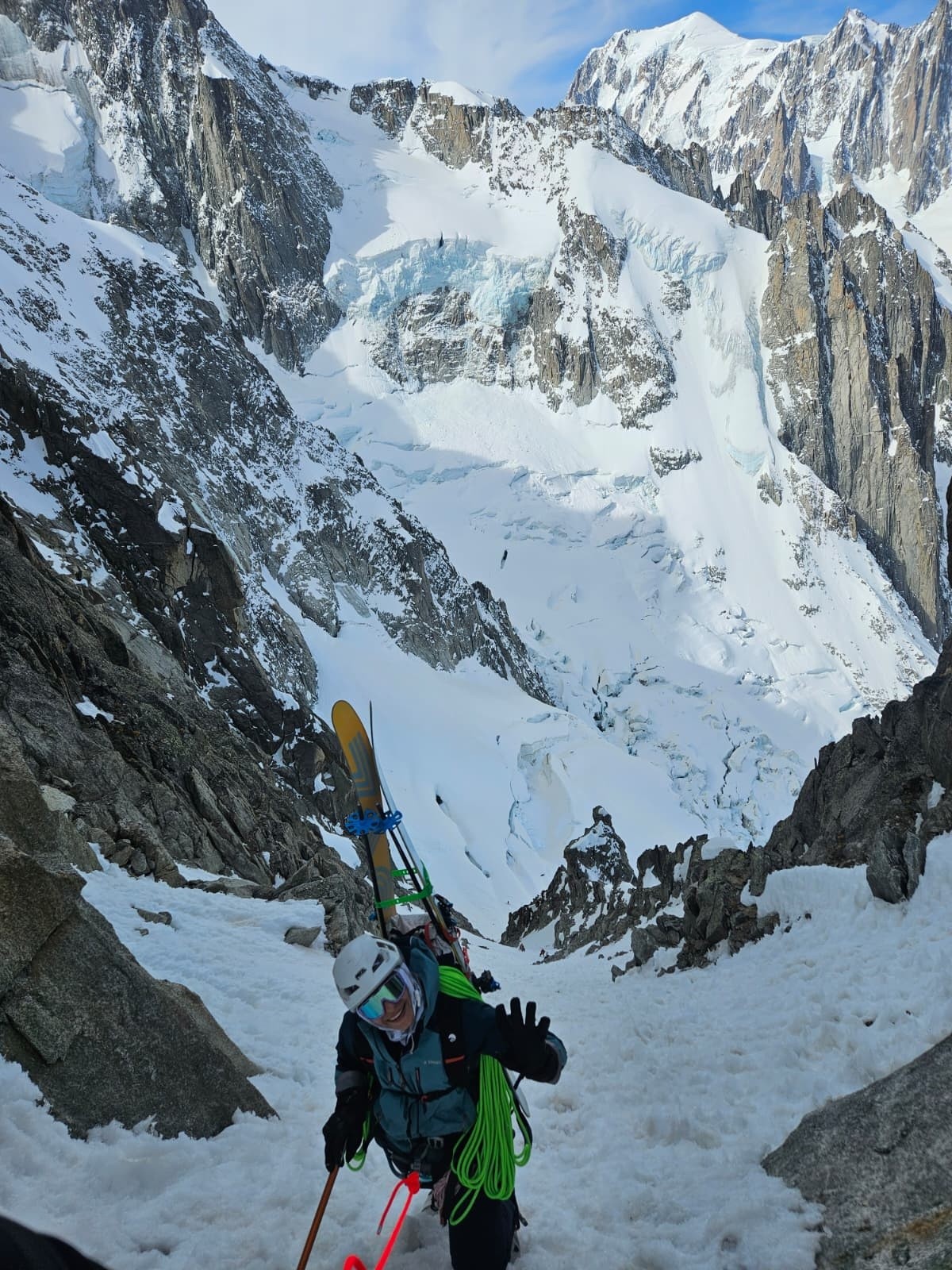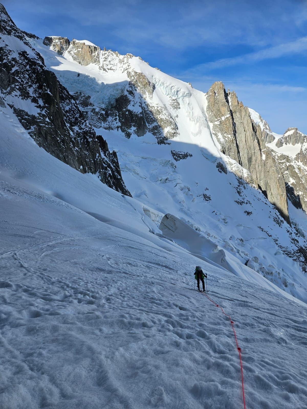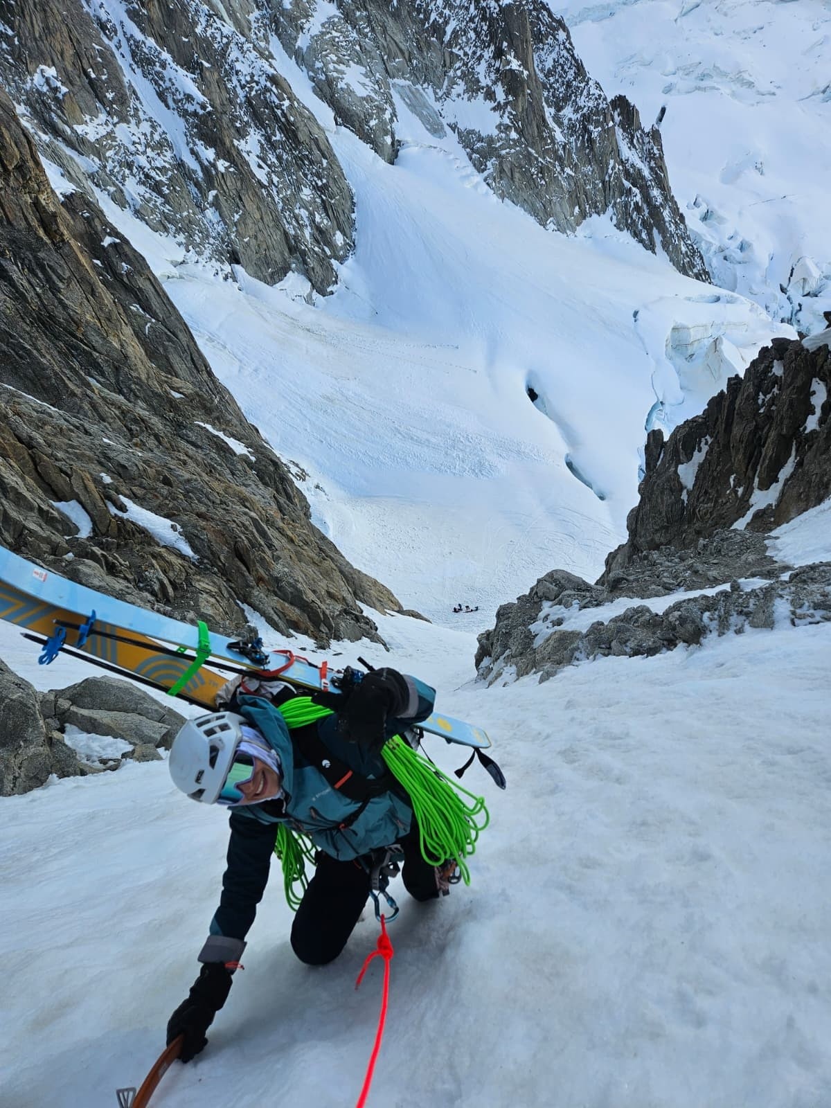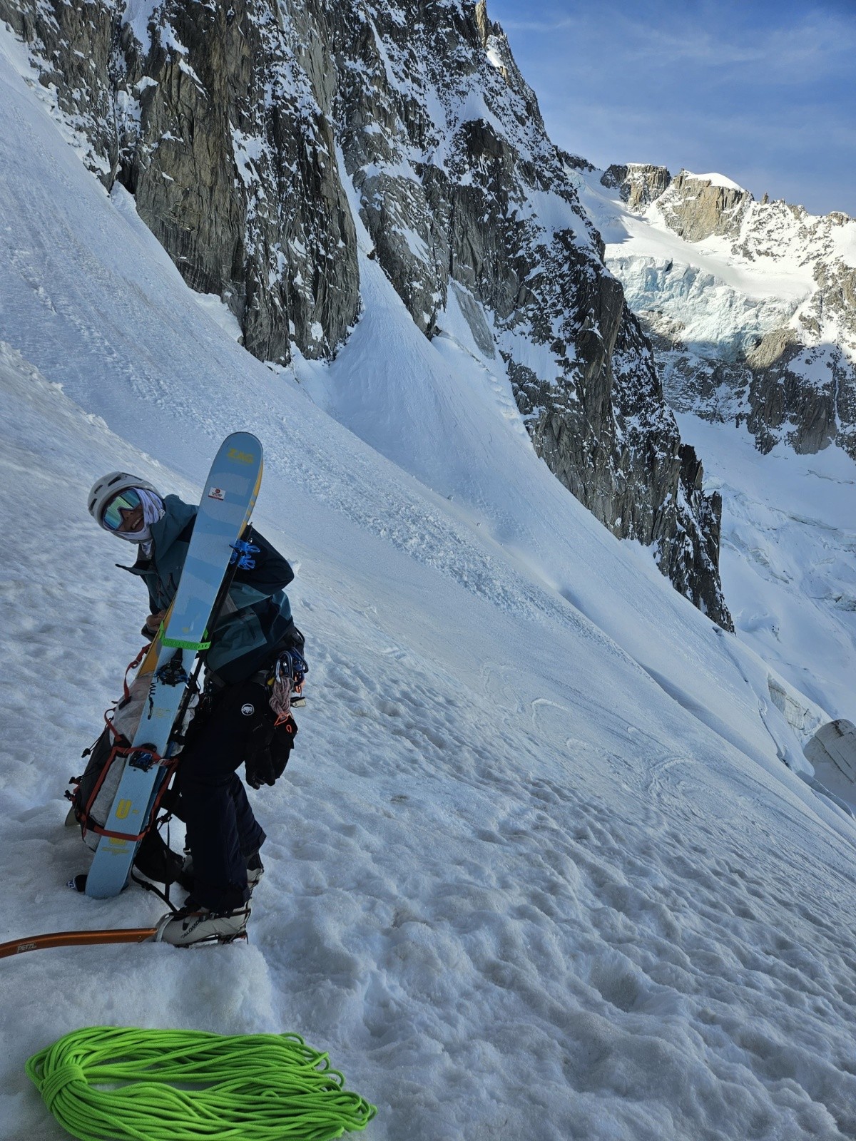 Aujourd'hui dimanche, 7h nous entamons la descende du glacier du Tacul. Assez casse gueule d'ailleurs, bien bien gelée 😂