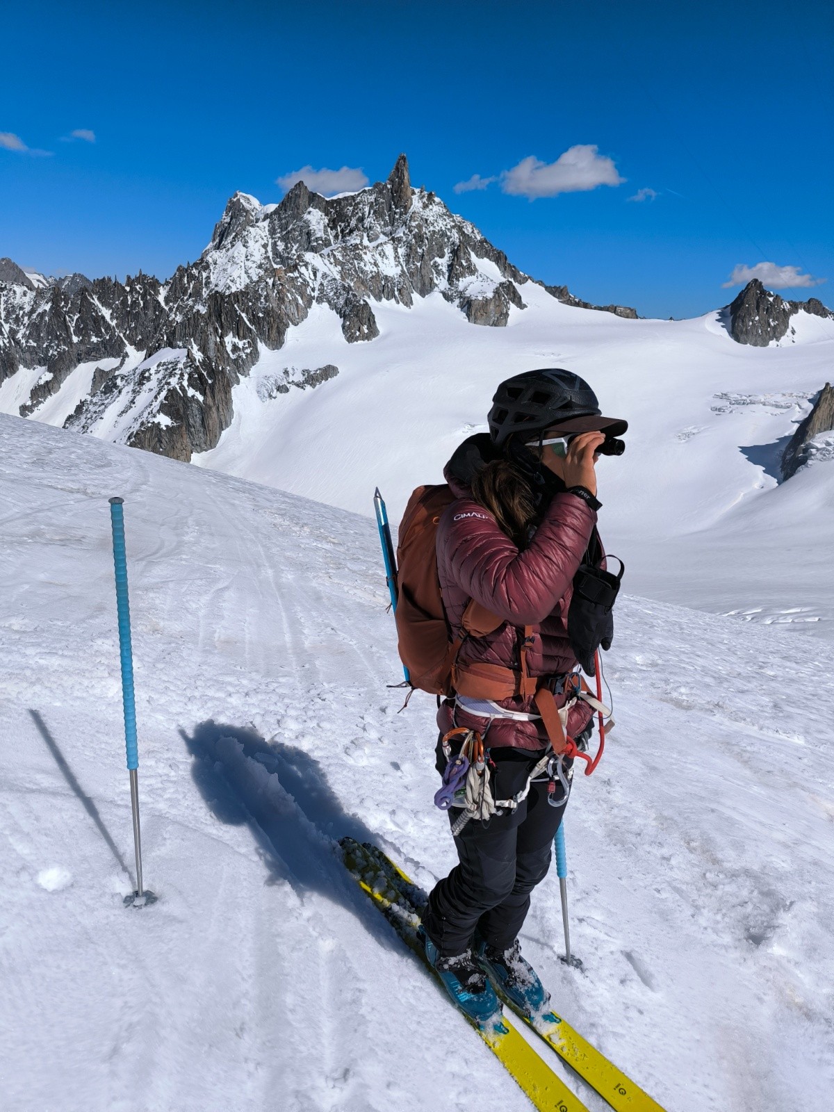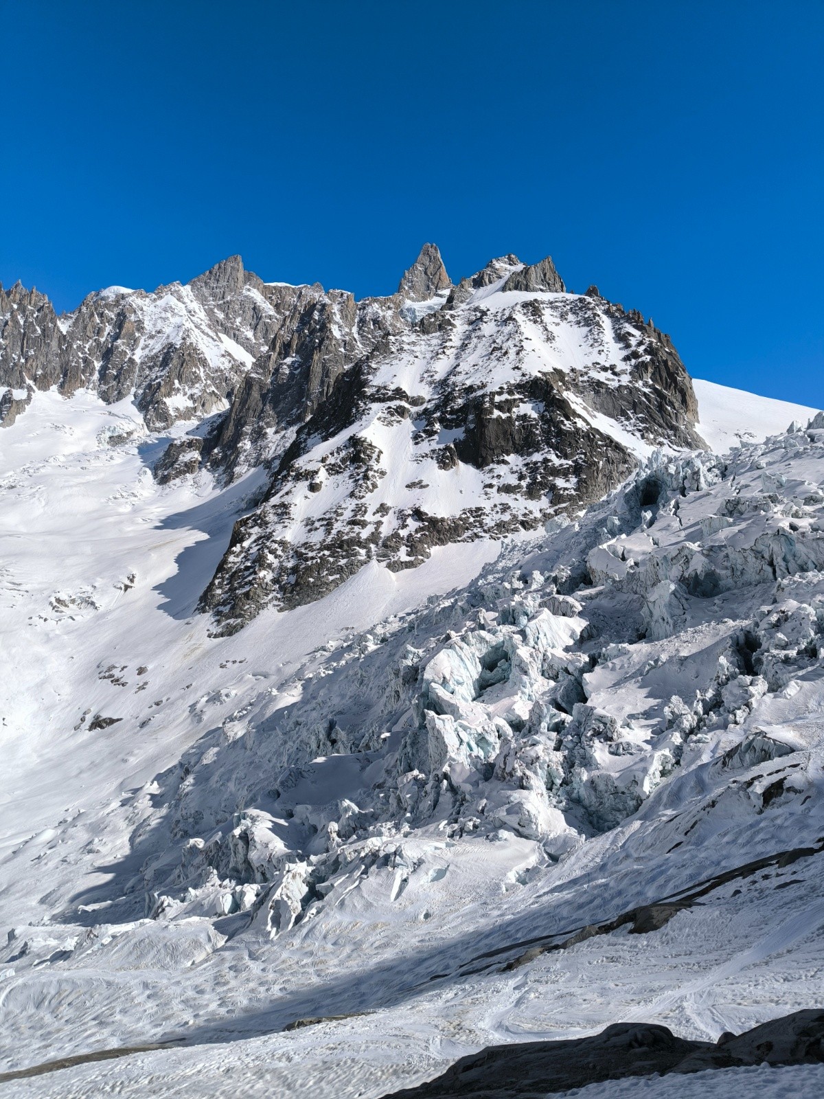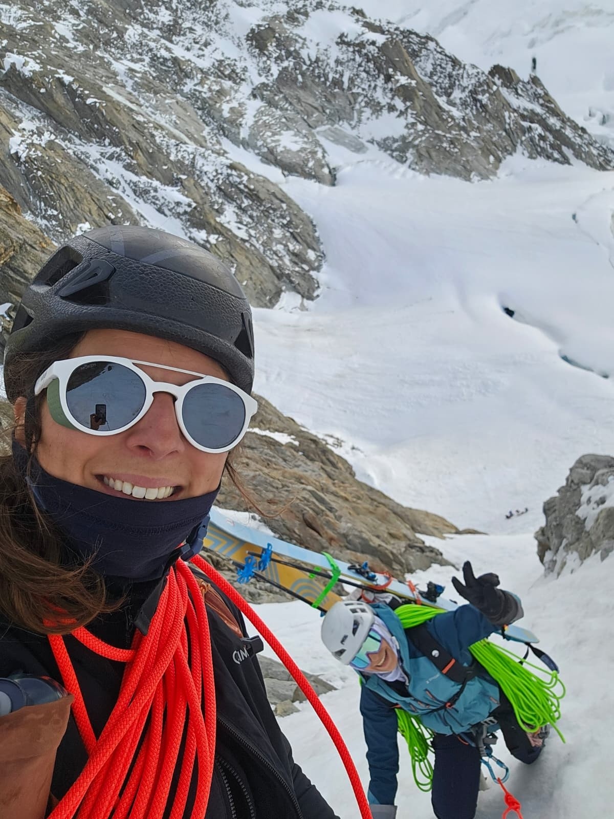 Aujourd'hui dimanche, 7h nous entamons la descende du glacier du Tacul. Assez casse gueule d'ailleurs, bien bien gelée 😂