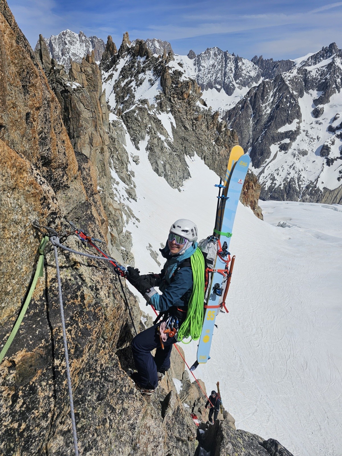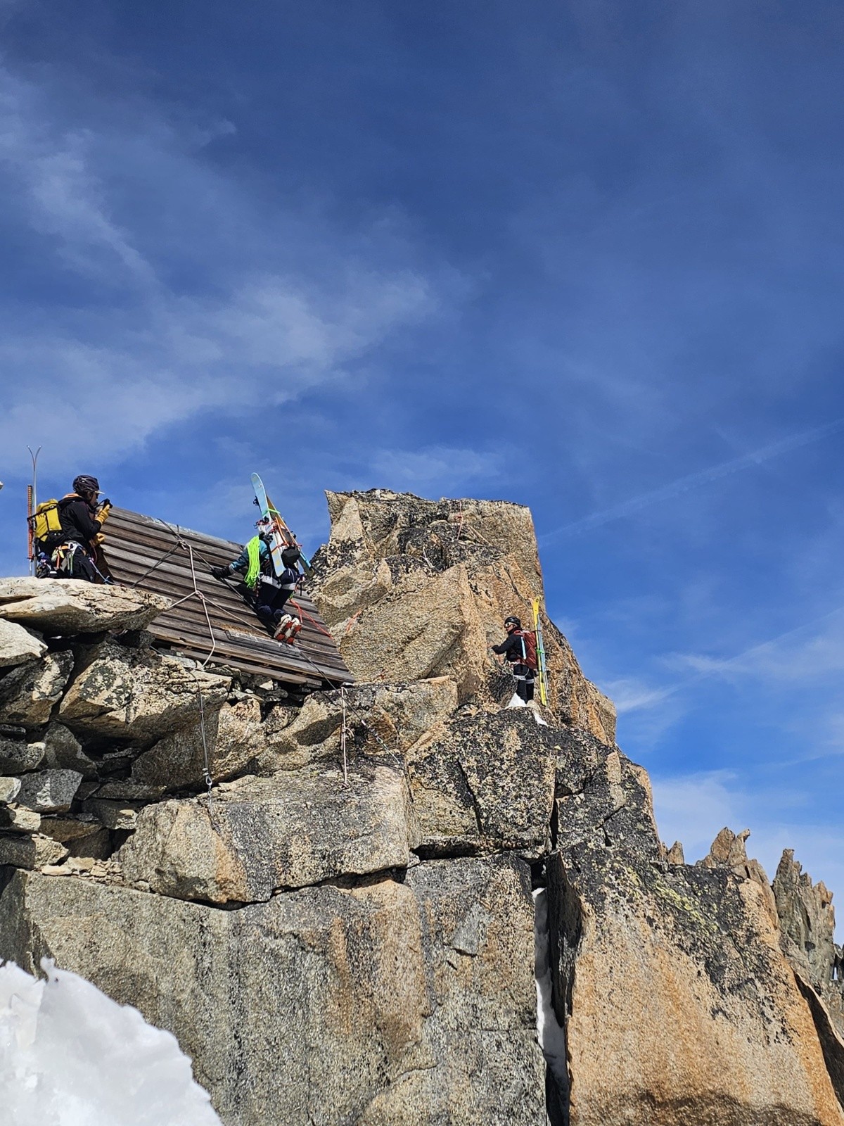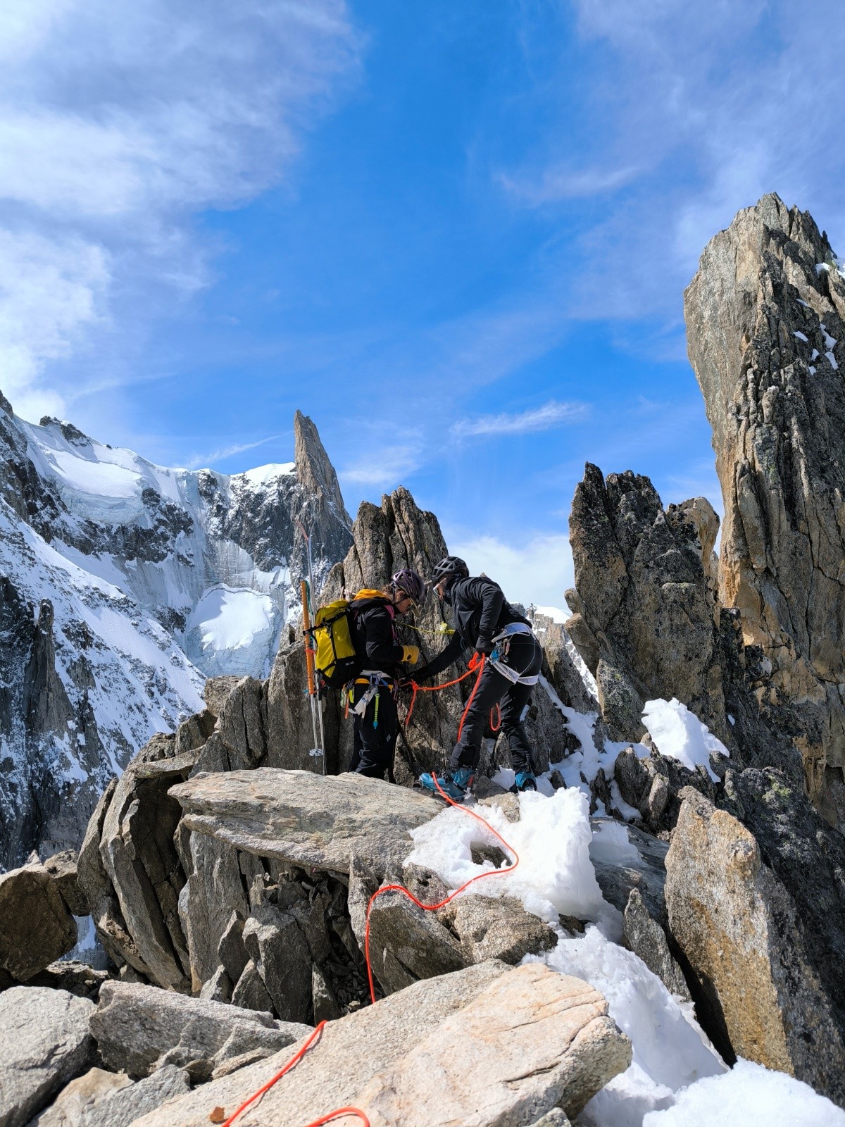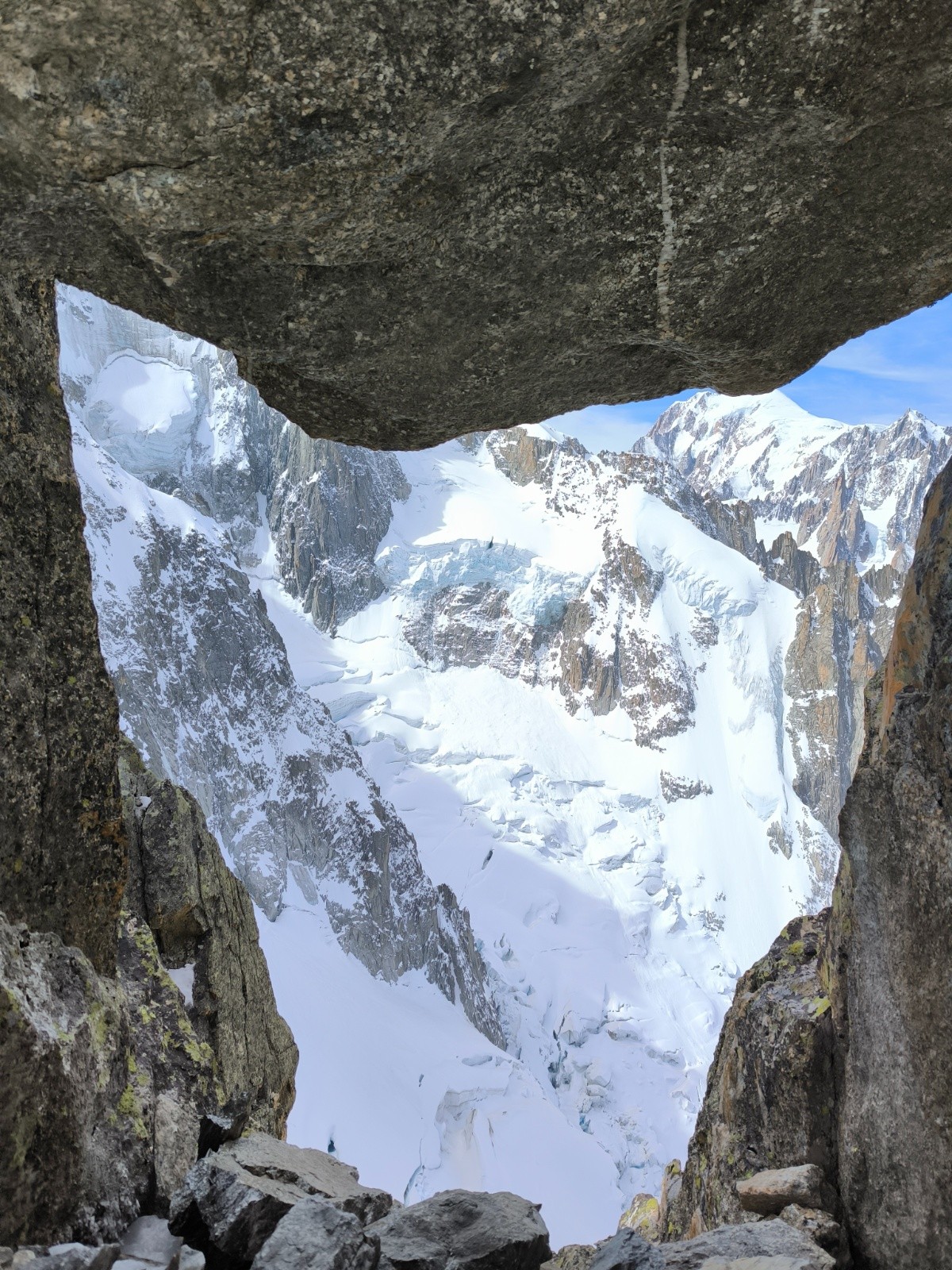 Aujourd'hui dimanche, 7h nous entamons la descende du glacier du Tacul. Assez casse gueule d'ailleurs, bien bien gelée 😂
