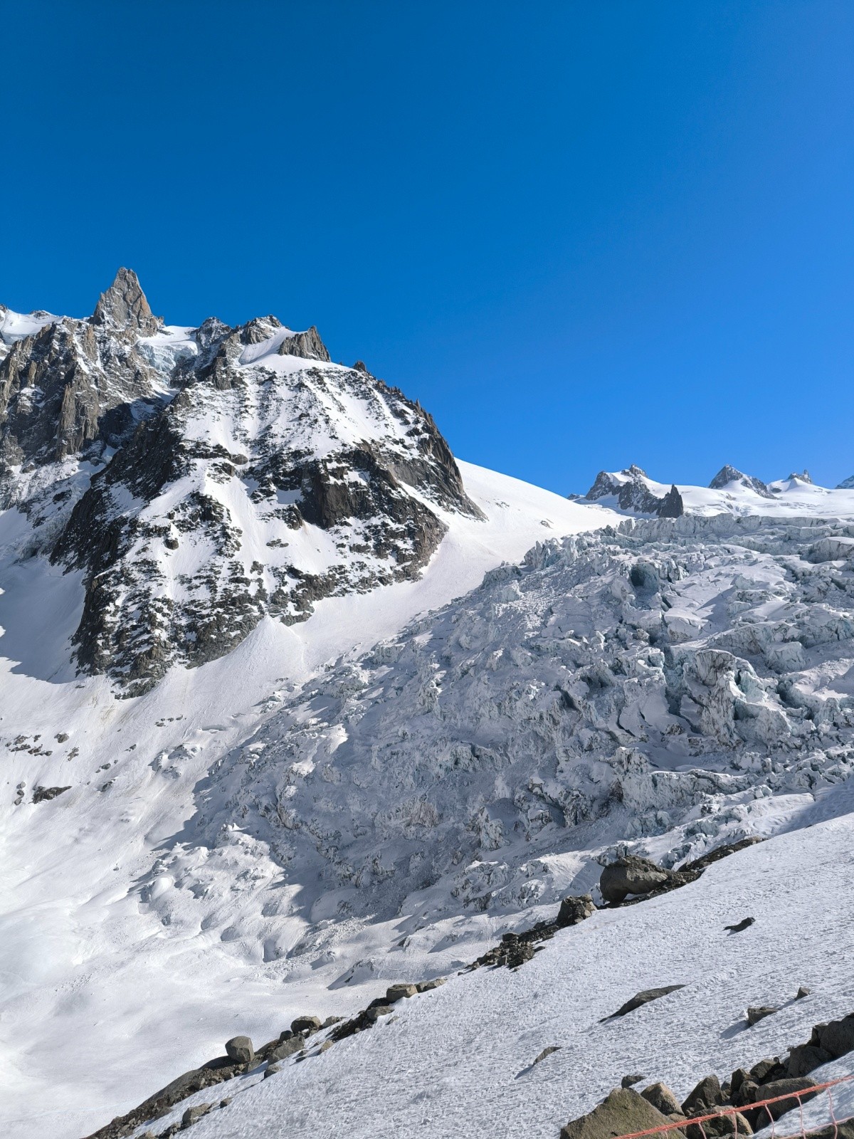 Conditions pour le ski : Descente glacée sur le glacier du Géant. Méfiance c'est un peu casse gueule (descendu à 7h du matin). Montée croûtée jusqu'au pied de le Brèche.