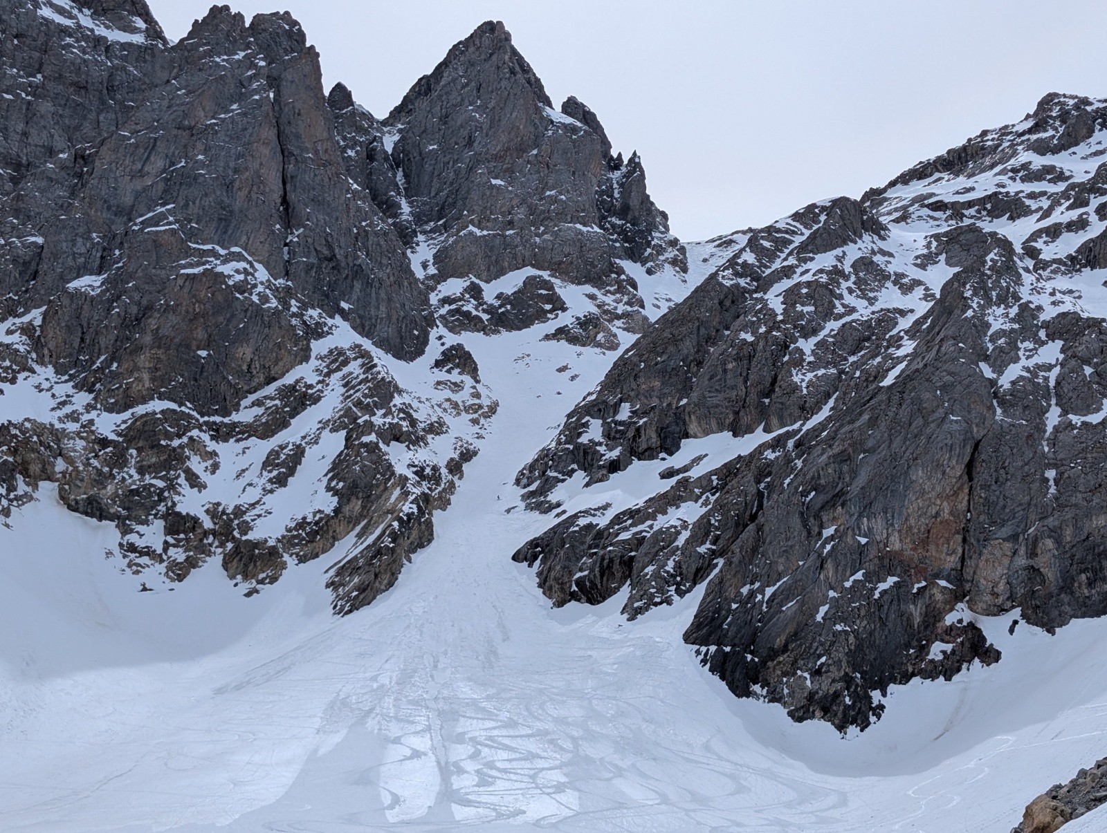 Conditions pour le ski : Bonnes conditions un peu de poudre tassé dans le couloir et bonne moquette en dessous