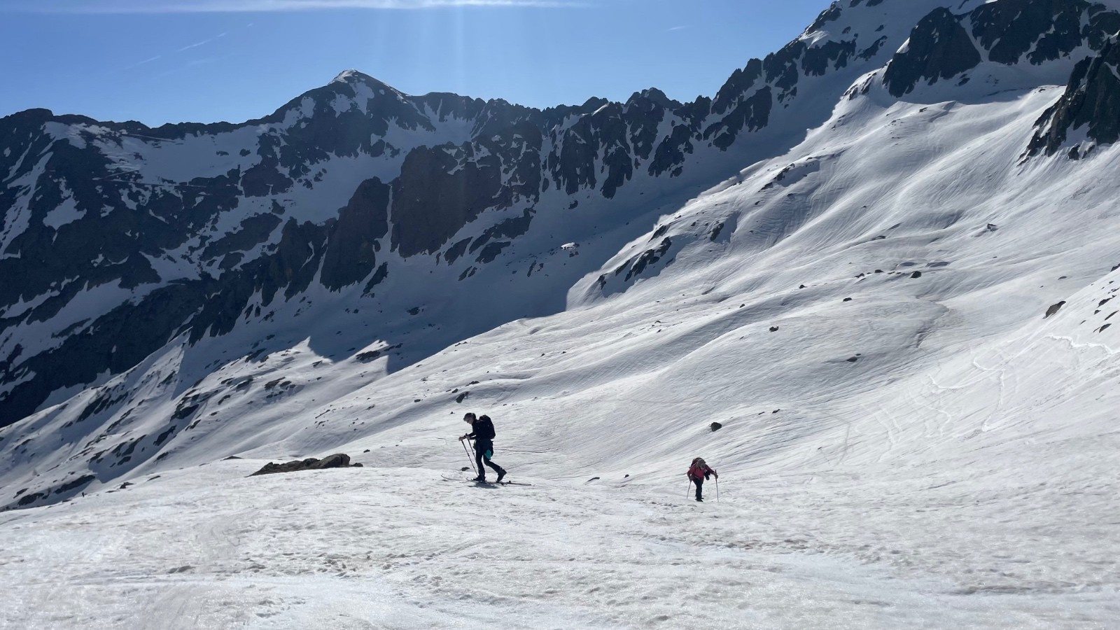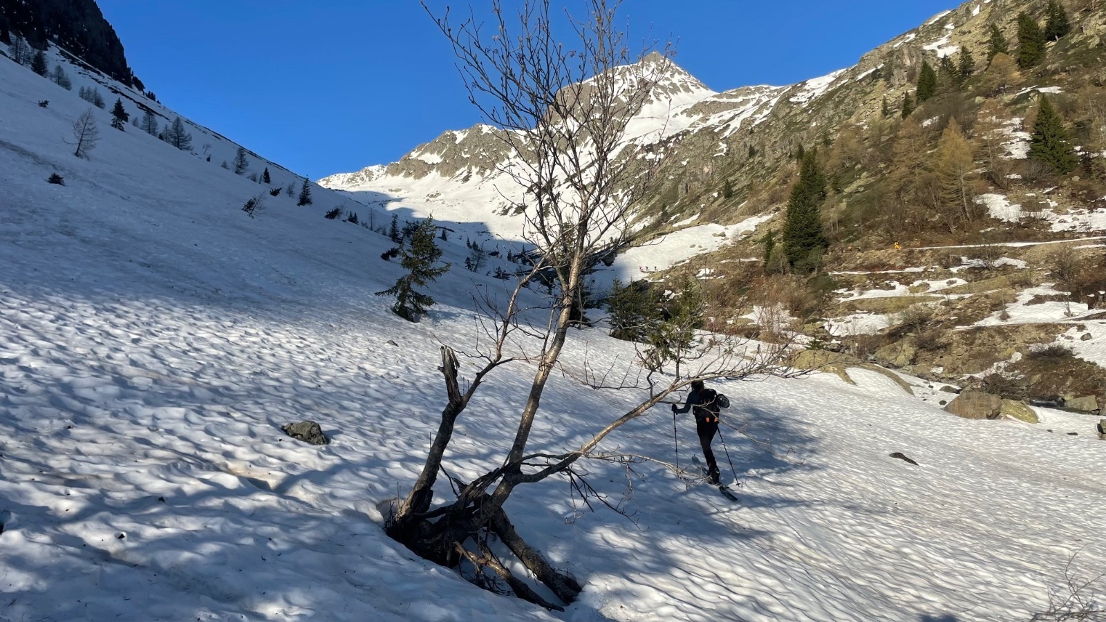 Conditions nivo et activité avalancheuse : Neige stabilisée et encore en bonne quantité. Ne pas descendre tard néanmoins (évidence compte tenu des températures)