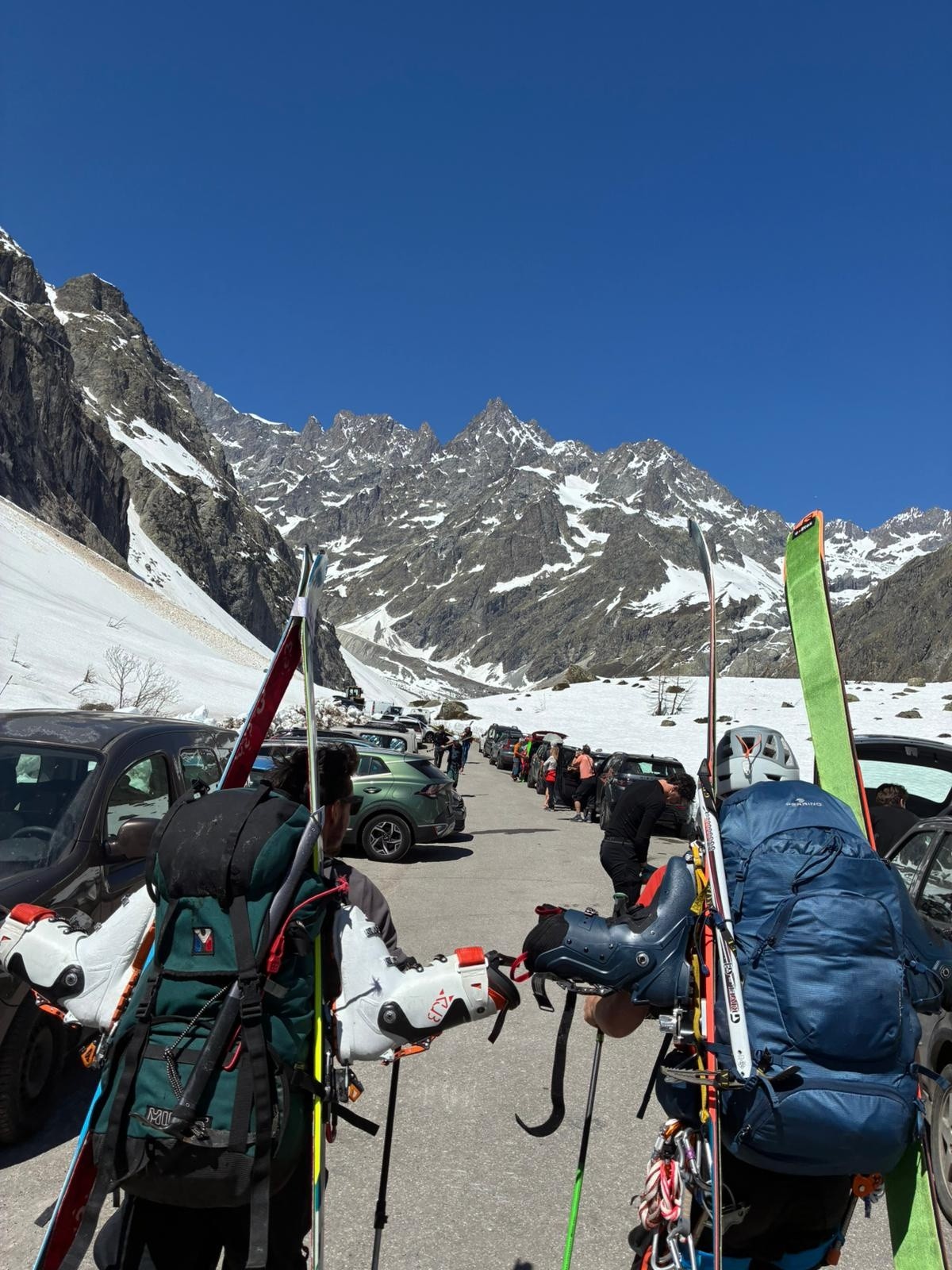 La trace pour monter au dôme passe sur la droite de la face. Une grande partie est gelée et raide. La trace à pied est bonne mais avec il faut les crampons pour être plus serein. La rimaye pour la Barre est correcte à passer. Il faut au moins 1 piolet pour faire la suite.