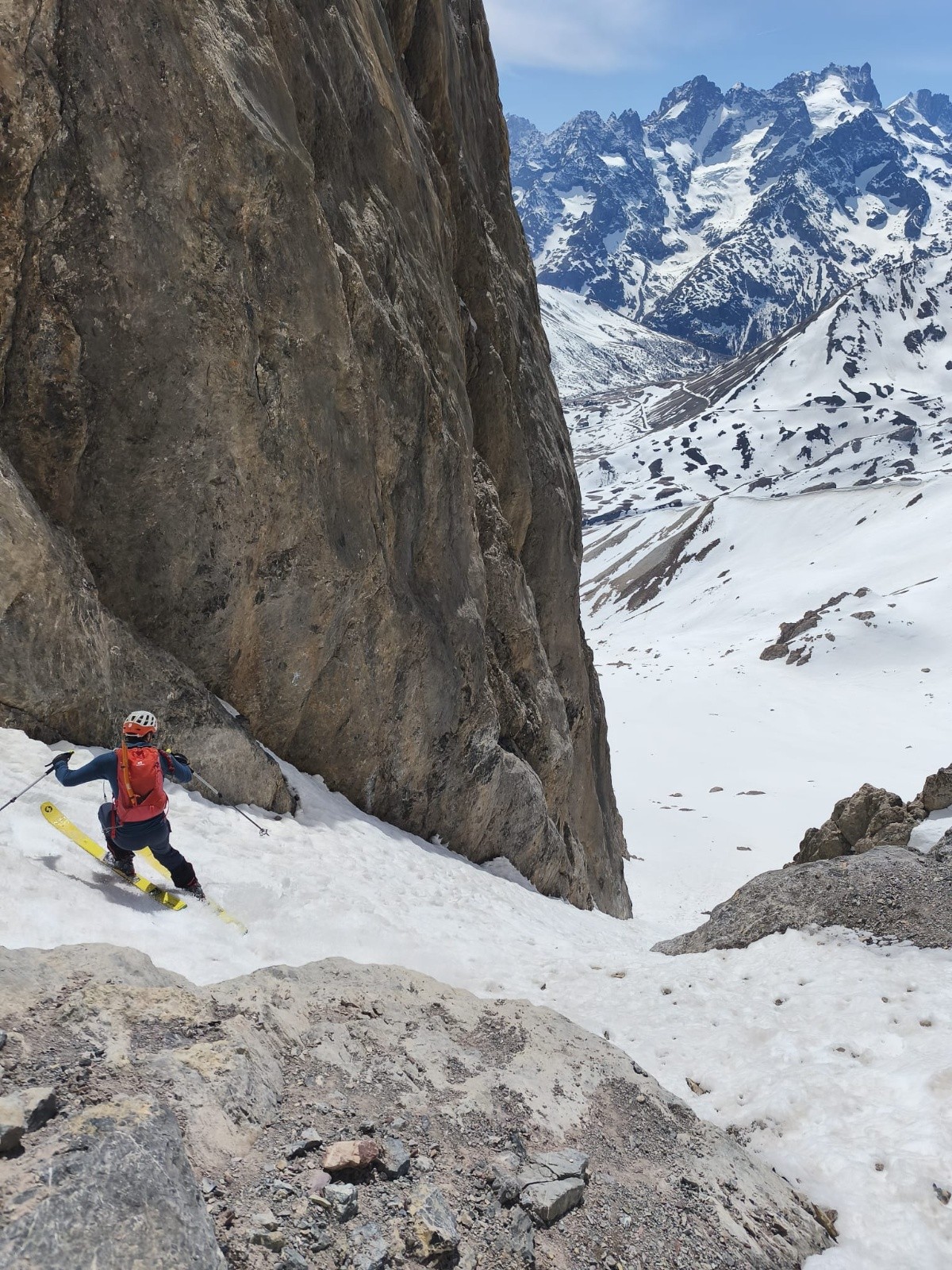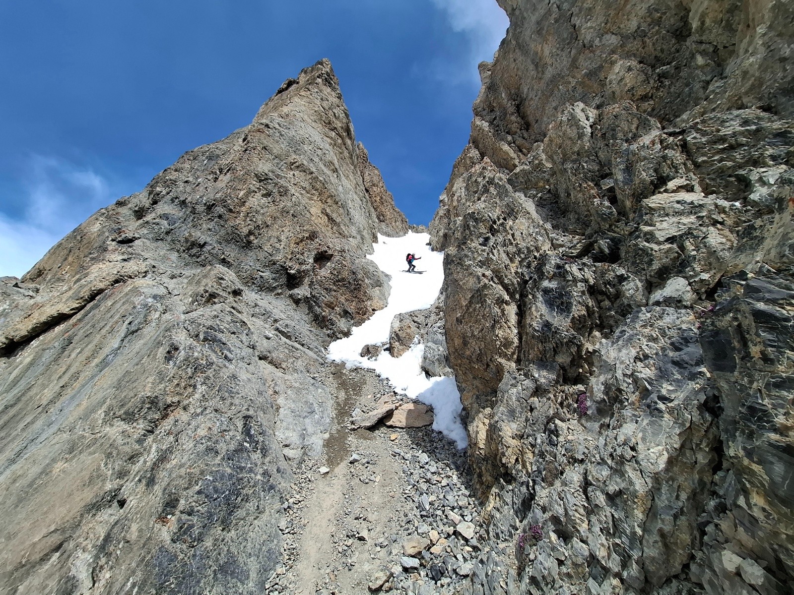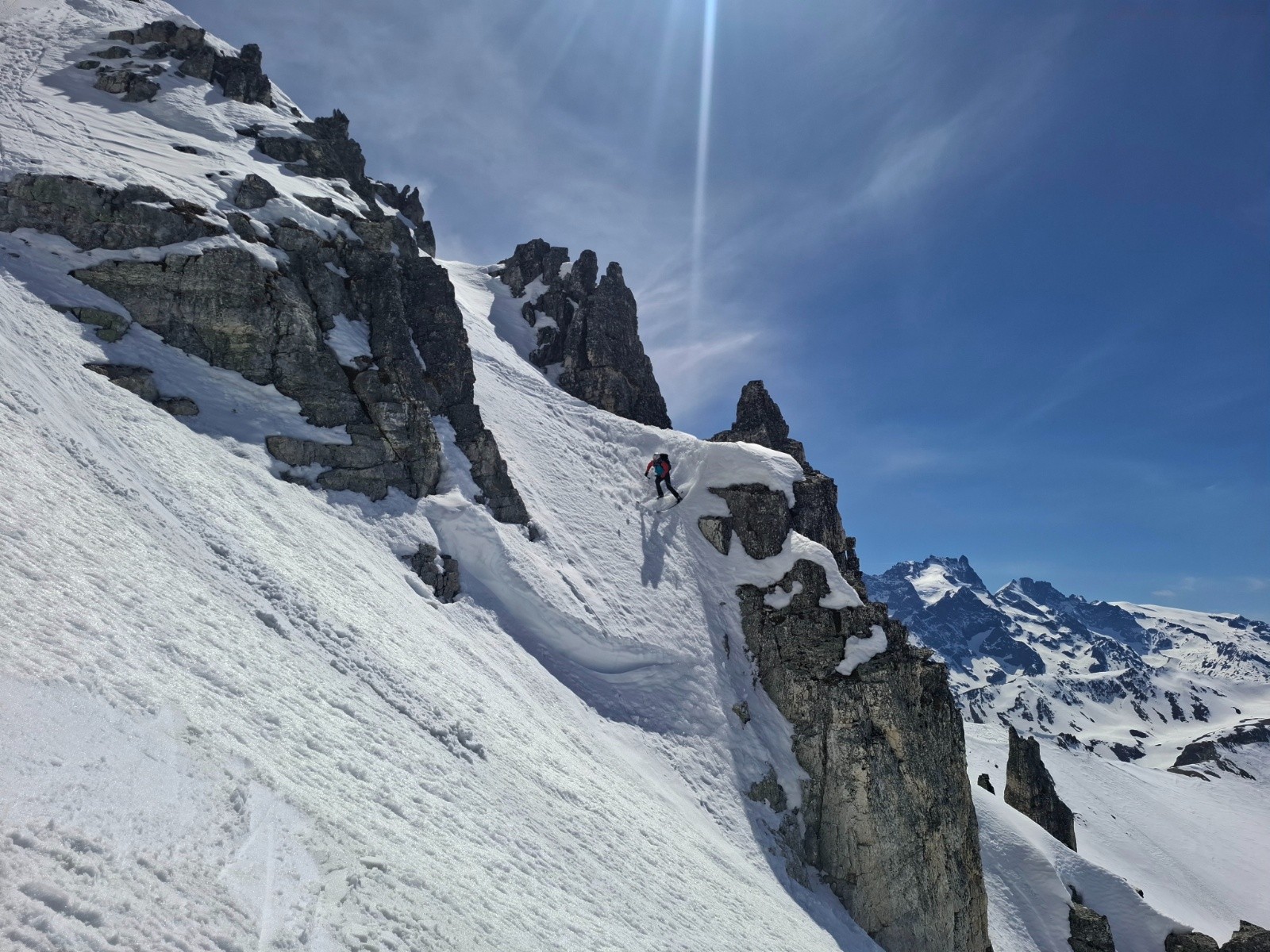 Couloir sud un peu sec avec un déchaussage un peu expo.