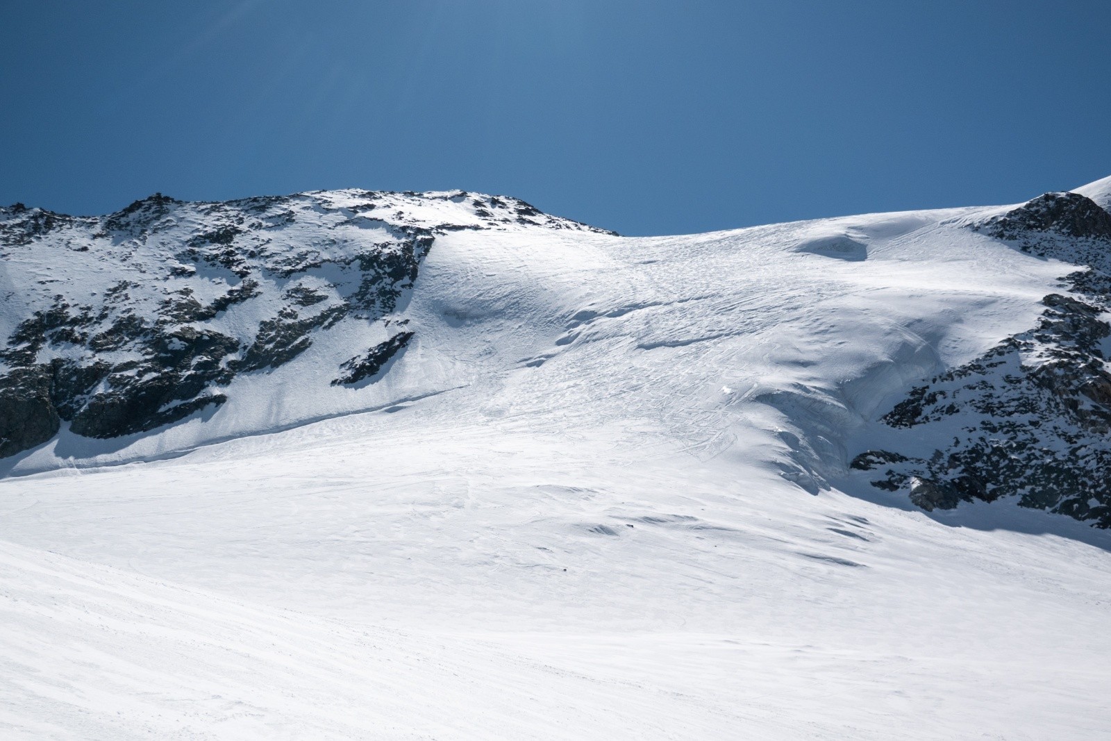 Conditions nivo et activité avalancheuse : risque 1 à 2 à cause de la chaleur, quelques cailloux tombés des parois
