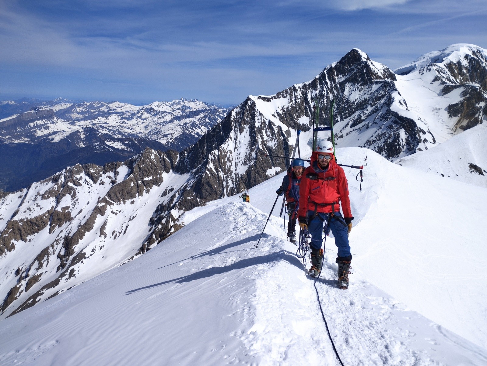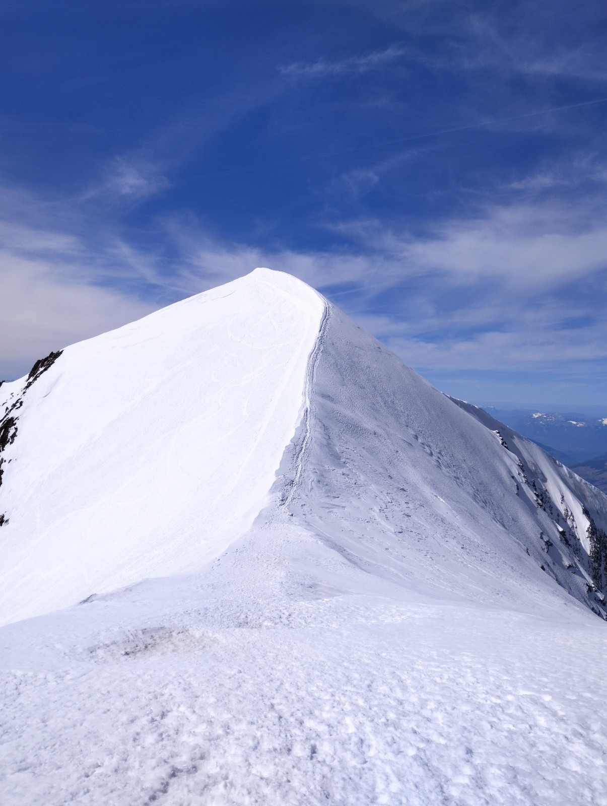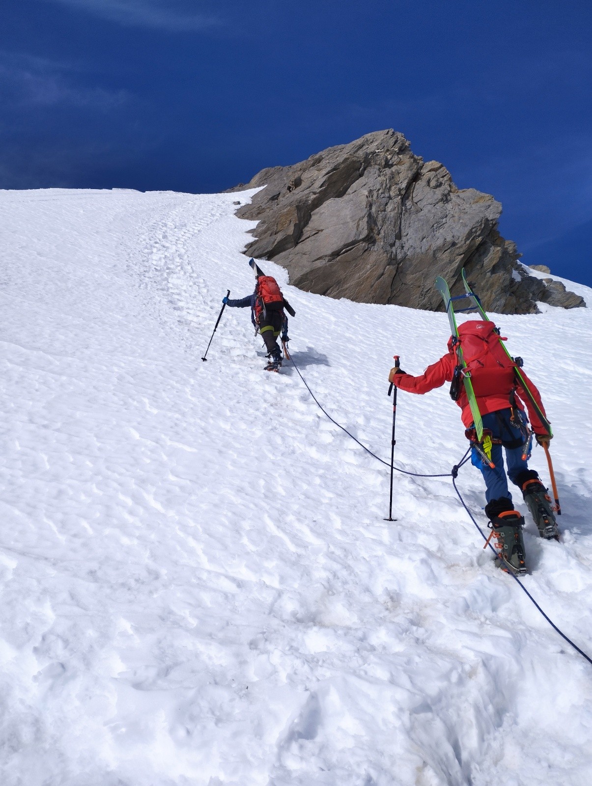 Le glacier de Tre la tête était bien bouché, rassurant. On s'est encordé que pour la toute fin et sur l'arête.