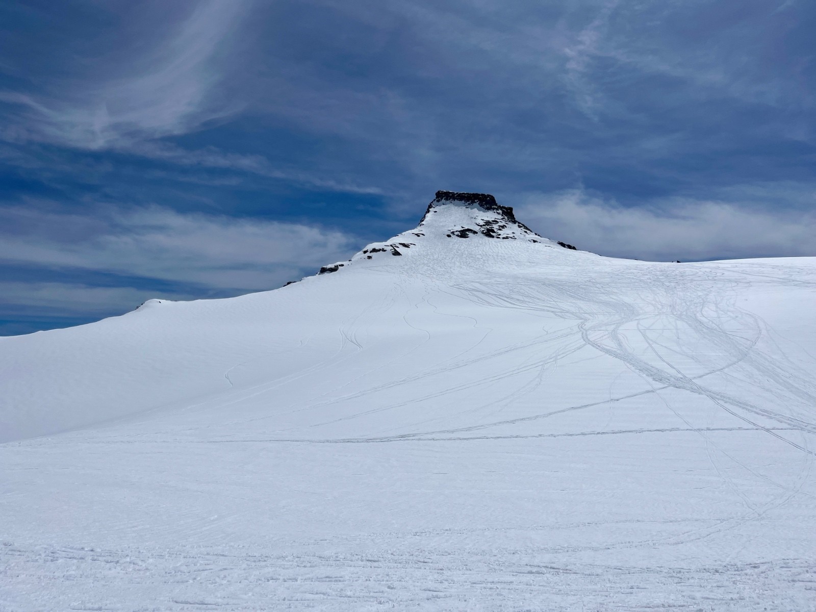 - Descente de l'Albaron pour le glacier supérieur du Vallonnet : bien trafollée tout du long. On a eu de la croûte qui accroche un peu les skis sur le grand plat sous le sommet, puis plus bas aussi (au-dessus de 2900m) dès que la pente était moins raide. Poudre trafollée dans les parties les plus raides du glacier. Puis sous 2900m, moquette/transfo plus ou moins profonde.