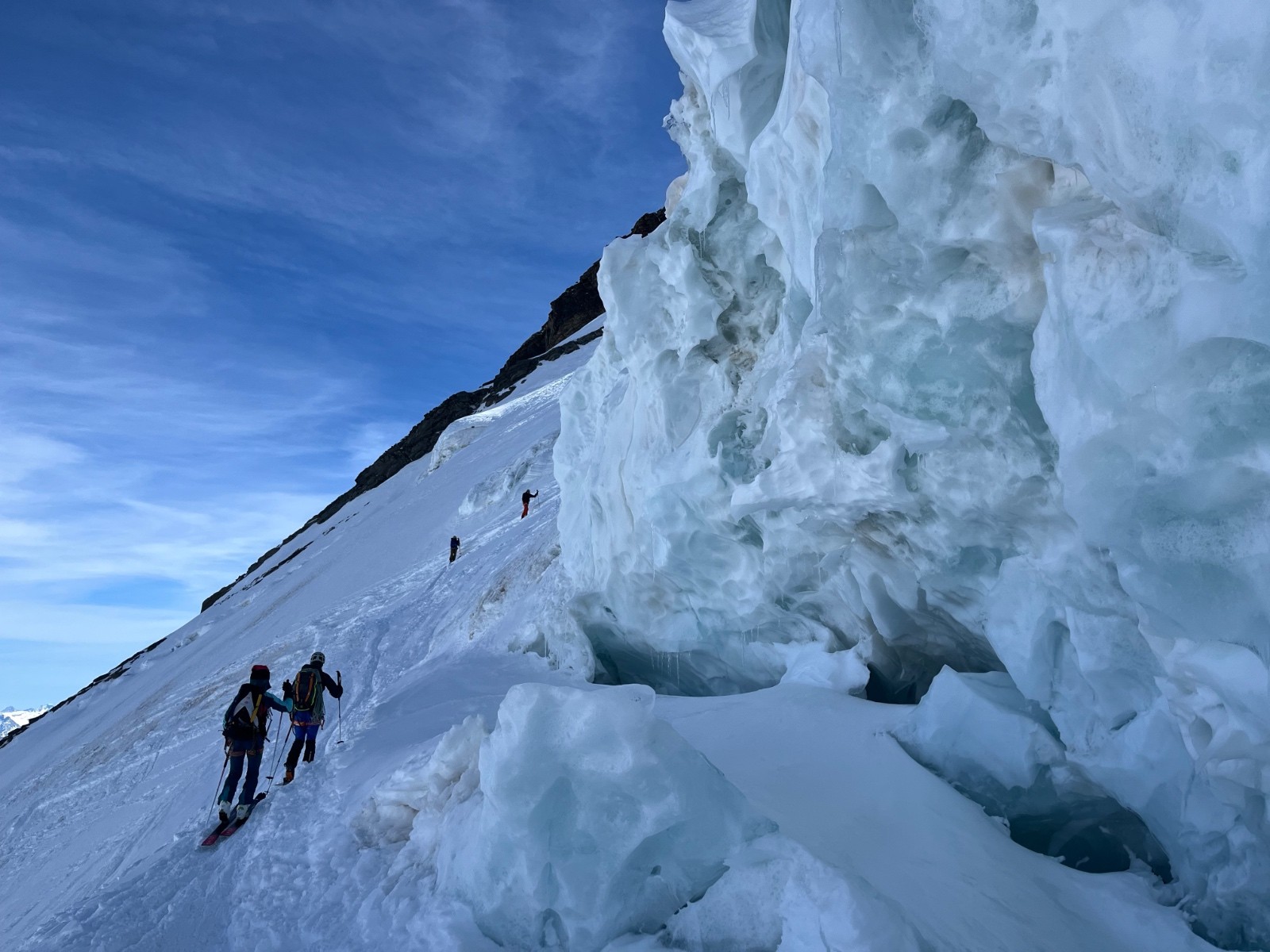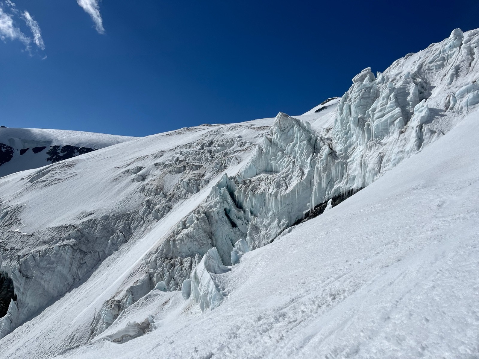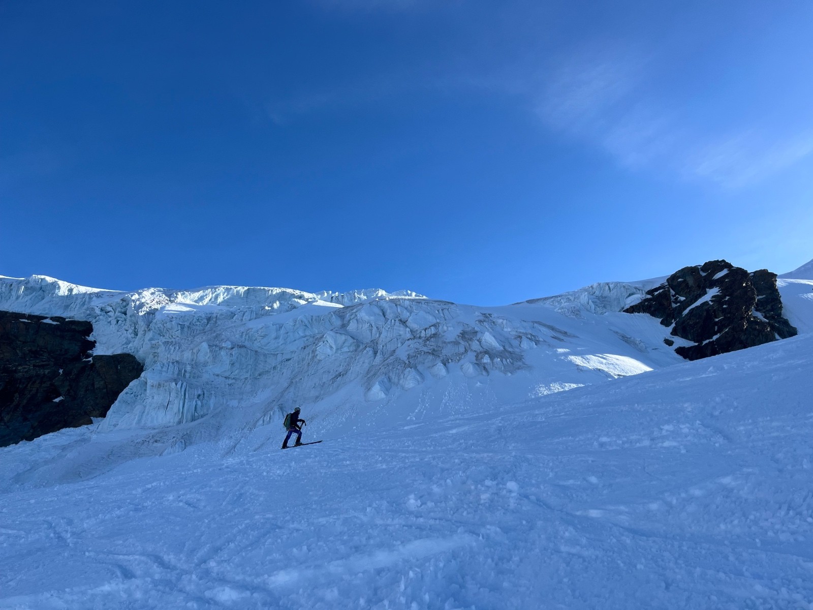 Conditions nivo et activité avalancheuse : un ou 2 séracs ramenés sur terre par la gravité , mais pas plus de digne d’avalanche que ça.