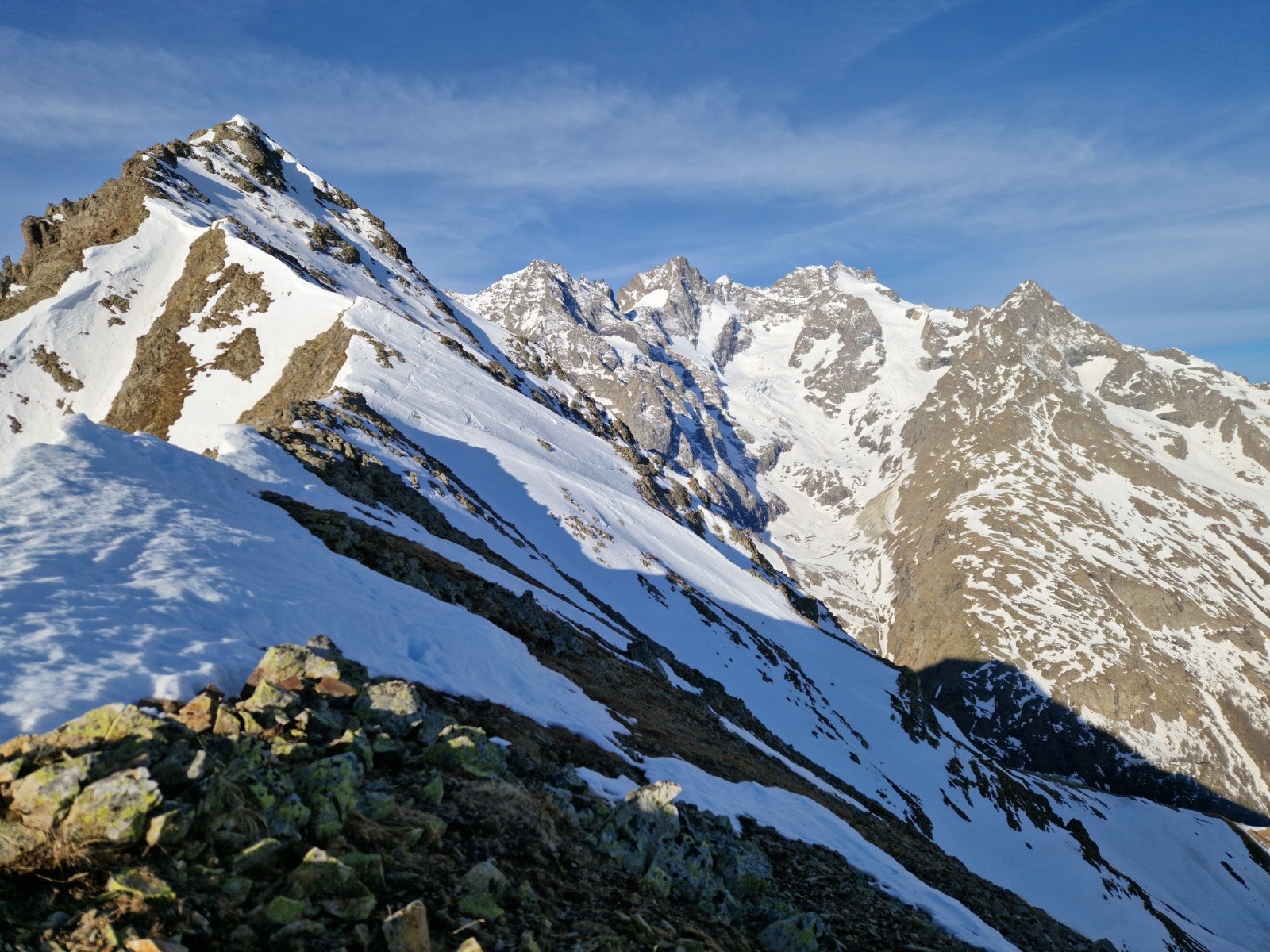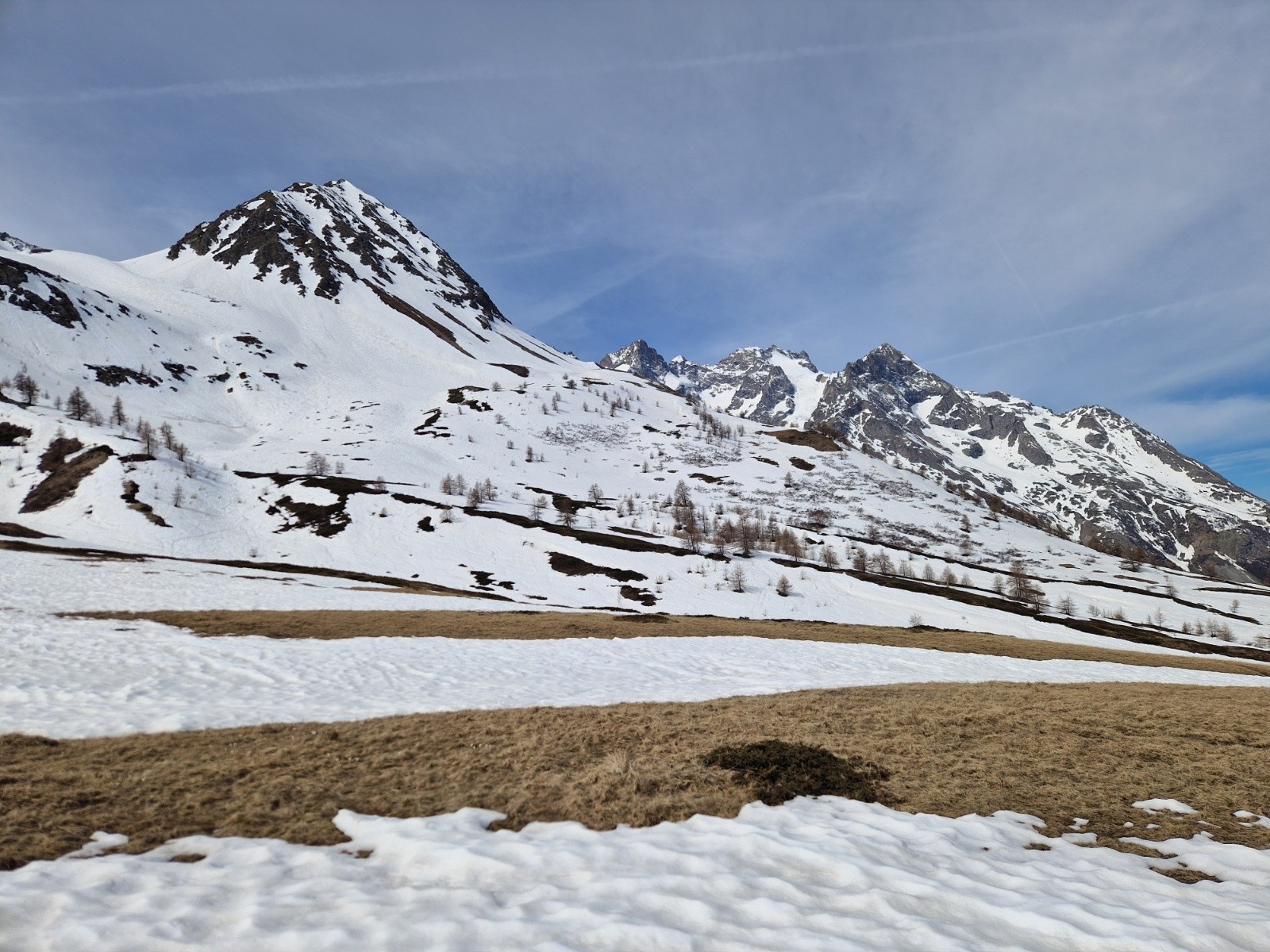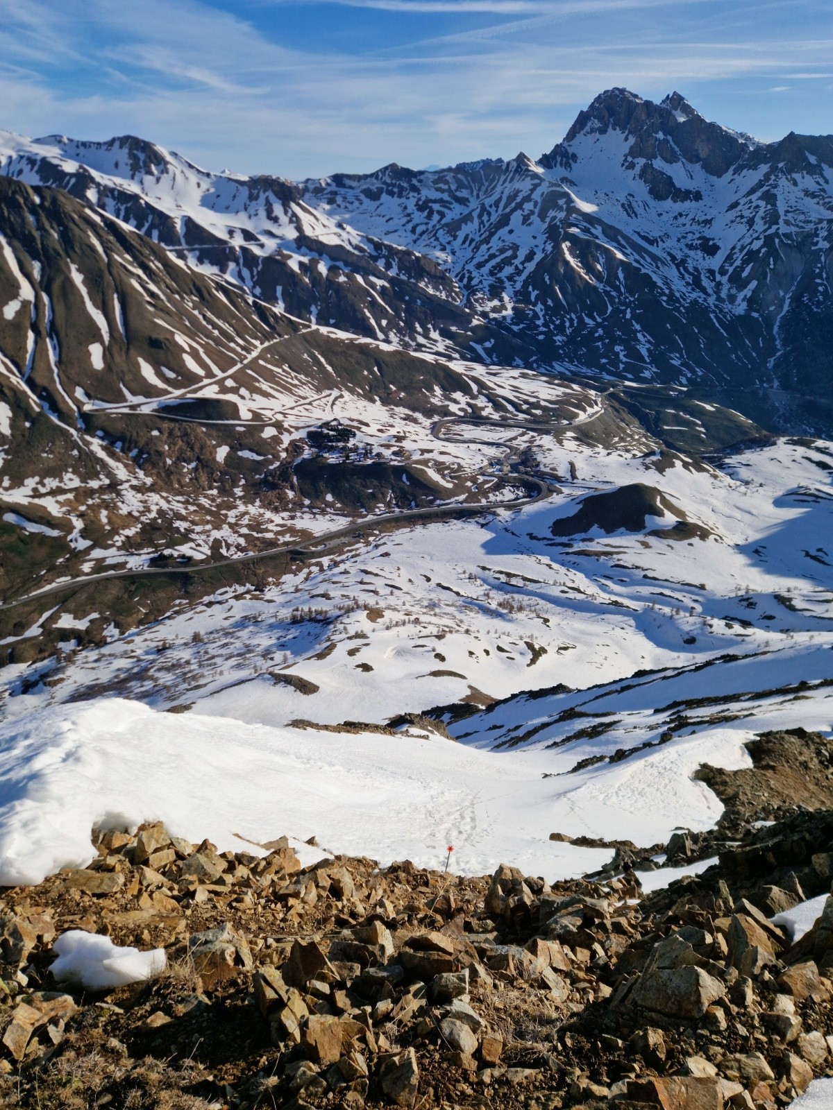 Pour le col, neige déjà décaillée à mon passage aller (9h30-10h) sur les pentes de la pyramide.