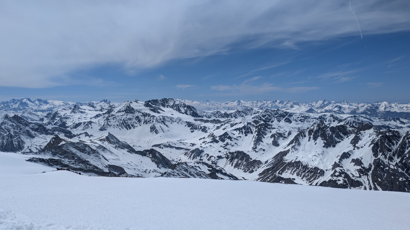 Belles journées autour des Domes de la Vanoise. Enneigement faible à toutes les altitudes, particulièrement frappant à haute altitude. On a bien utilisé les crampons, en particulier sur l'accès au cirque du Dard et la montée au Dome des Sonnailles (X2). A noter que pour cette montée, le contournement d'une petite barre rocheuse à 3100 oblige à du cramponnage assez raide (vrai 40°)
