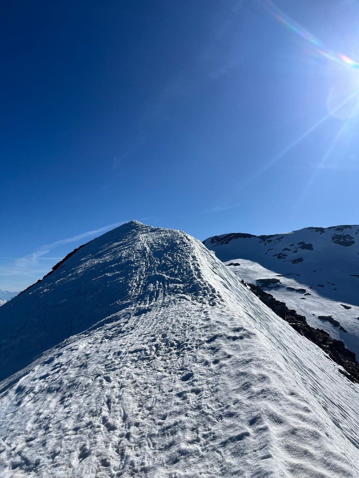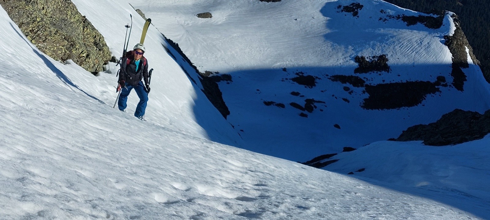 Avec Marion-du Sorbier-récemment-labellisée-Greloute ! Sans surprise, ça papote sans essoufflement même à la montée ;-), et il faut prévoir de lui coller discrètement un parpaing dans son sac à dos, ou alors de lui empoisonner subtilement son breuvage (solution adoptée ce jour, ça avait déjà bien fonctionné précédemment avec la Greloute-Bolide 😋) - pour espérer la ralentir un tantinet et pouvoir la suivre ! A part ça elle n'est pas trop pénible malgré ses peaux datant du millénaire dernier, qui se gorgent d'eau et se décollent allègrement, ce qui lui permet de me laisser généreusement faire la trace à la montée et de faire sa part de traçage à la descente (...d'habitude c'est ma technique, là je me suis fait avoir !).