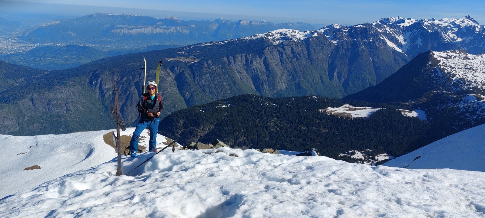 Route "ouverte" (déneigée/fraisée, pas encore clairement autorisée...) : déchaussage à la voiture, impec', mais ça fond vite, notamment sur la Crête de Brouffier par endroits. Nous sommes montés par la forêt au dessus de la stèle, mais descendus par la pente directement au dessus du parking (donc à peine plus vers le Nord : bien plus skiante, et probablement préférable à la montée).