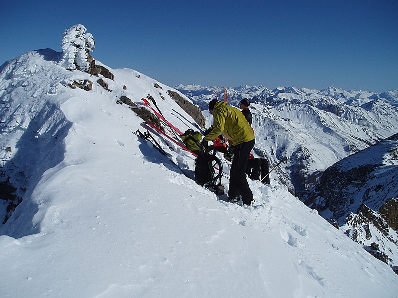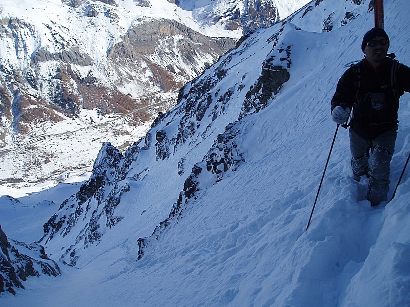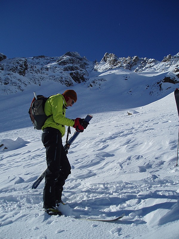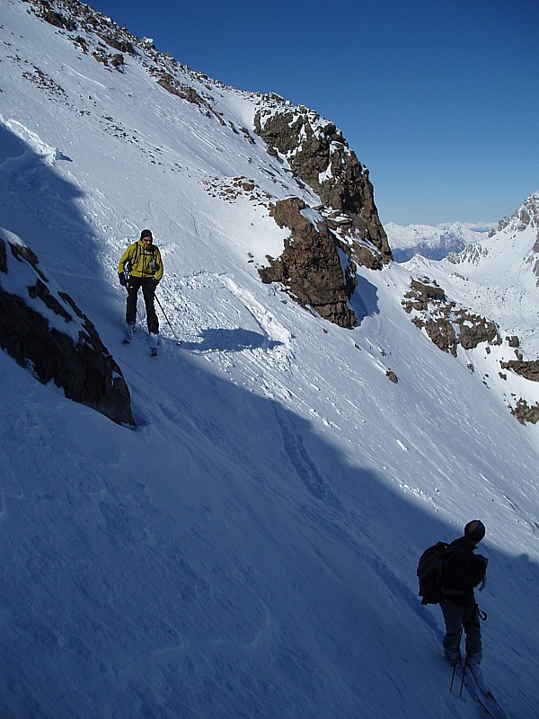 Lauraret > Cochette > descente sur 300m environ dans la poudre, puis remontee au sommet Est de Combeynot par le couloir banane a gauche de la cote rocheuse.