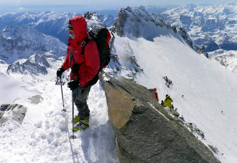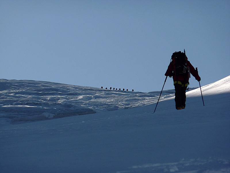 Pour les autres, la récompense à été totale, avec un soleil radieux, et des paysages vraiment très "haute montagne". Seul petit bémol, personne n'a réussi à toucher la Vierge sommitale, pour cause d'embouteillage !!! En effet, si nous étions moins de 20 personnes à monter de Chabod, il y avait certainement plus de 80 randonneurs sur le plateau à 4000m.