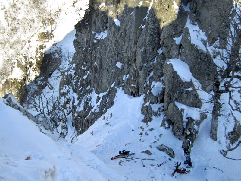 Grand beau, belles pentes, grosse ambiance...manque quand même un bon remplissage pour profiter pleinement des ces lignes techniques. Une bien belle matinée entre alpi et ski de couloir...