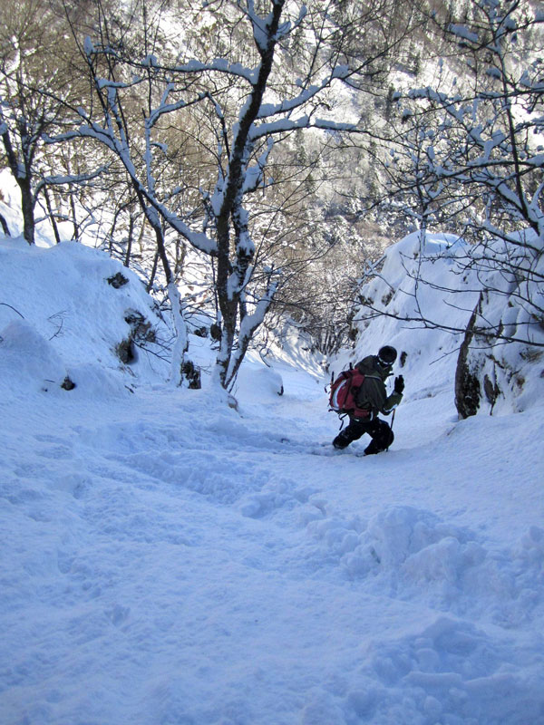 30 cm de fraiche souvent croutée voir légèrement plaquée. Sous couche béton/glacée assez traitre et irrégulière. Manque un fond homogène. Dans ce secteur raide les couloirs ont été ravagés par des coulées de fond lors des redoux successifs.