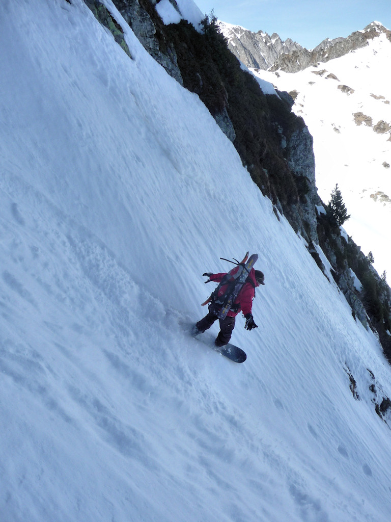 Couloir NE de l'antécime : alternance de dur et de crouté. Crouté fin à la base.