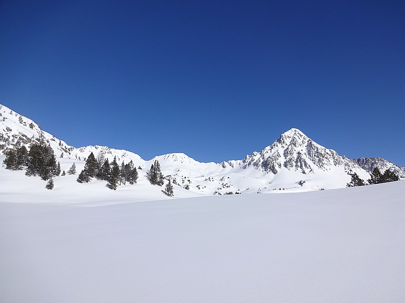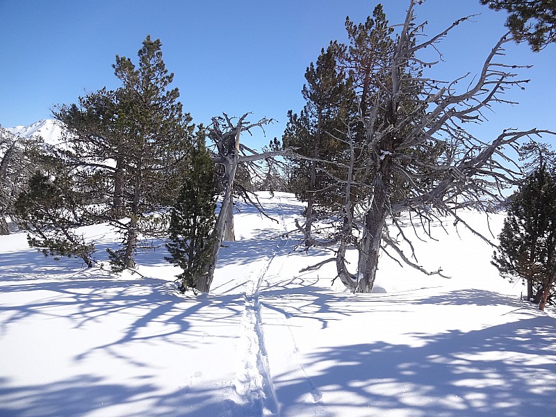 Descente acrabotique dans la forêt jusqu'au lac de l'Oule. Itou dans la montée en face jusque vers 2000 m. Ensuite un régal de trace jusqu'au lac de Port Bielh. La montée à Caderolles fut éprouvante : trop de neige à brasser ! Et un gros coup de barre... J'ai préféré ne pas dépeauter pour rejoindre le col de Bastanet. Je suis tombé en panne d'eau à ce moment là. Et sans réchaud par le froid qu'il faisait, impossible de faire fondre la neige ! Grosse caillante à la descente jusqu'au lac de l'Oule. Remontée monotone vers le restaurant Merlans où heureusement la salle hors sac m'a enfin permis de boire. Dernière descente dans le noir vers Espiaube.