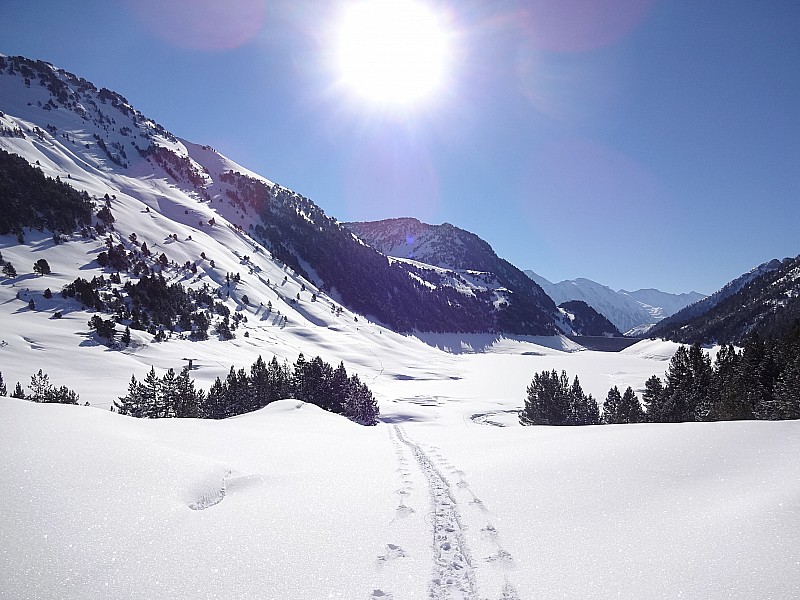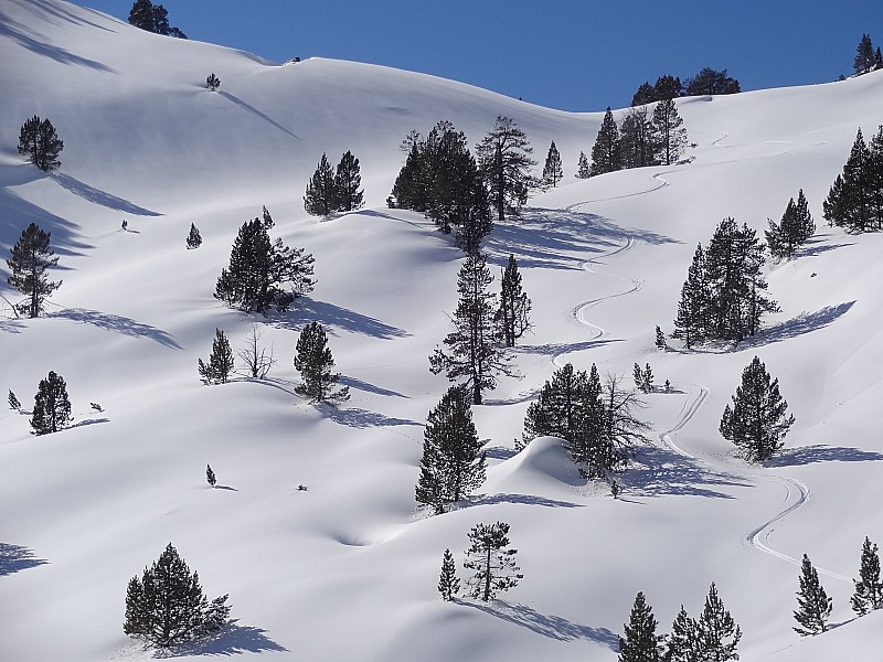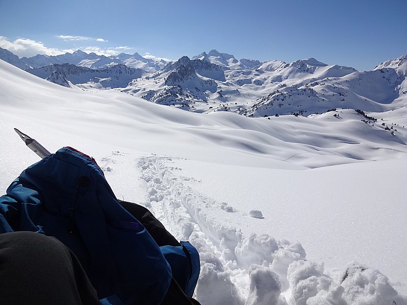 Parti à 8h45, j'ai commencé par remonter la piste du Col de Portet par les pistes puis descendu jusqu'en dessous du restaurant Merlans. J'ai du croisé 20 personnes sur les pistes. Ensuite ce fut la grande solitude jusqu'au retour au parking à 19h !
