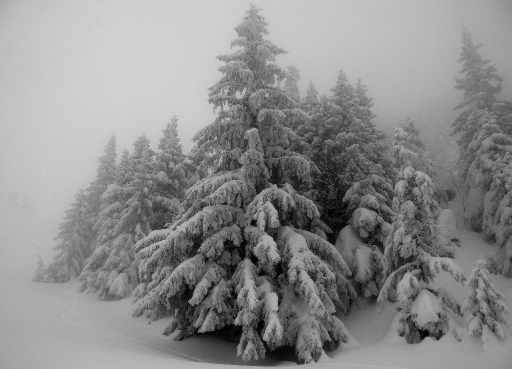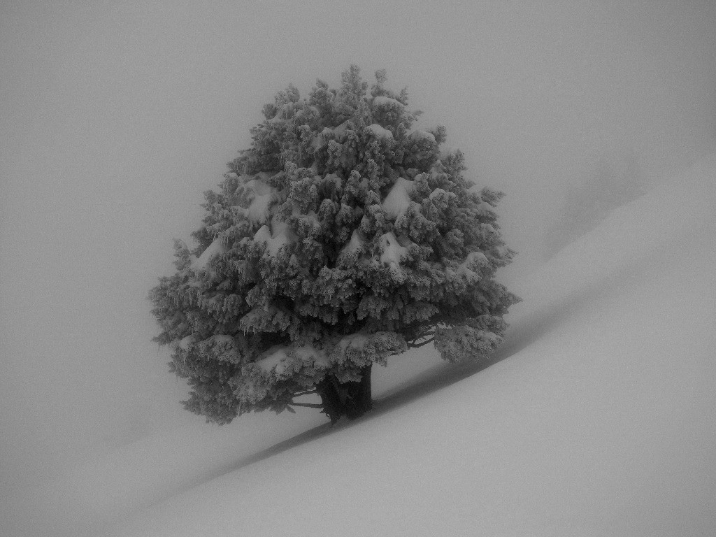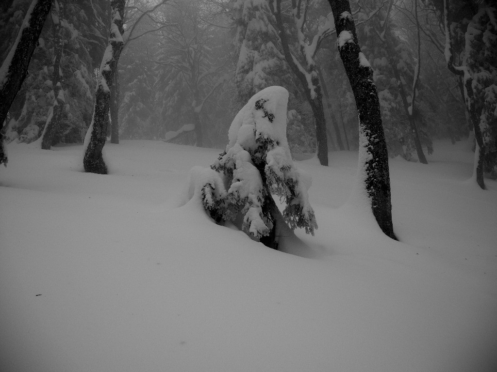 J'insiste et je rejoins ce sommet en visant les rares pins ou sapins... à la descente je suis les traces de montée ...impossible de se lâcher avec cette visibilité. La bonne portion sera donc la forêt (claire en haut) puis le chemin ludique...