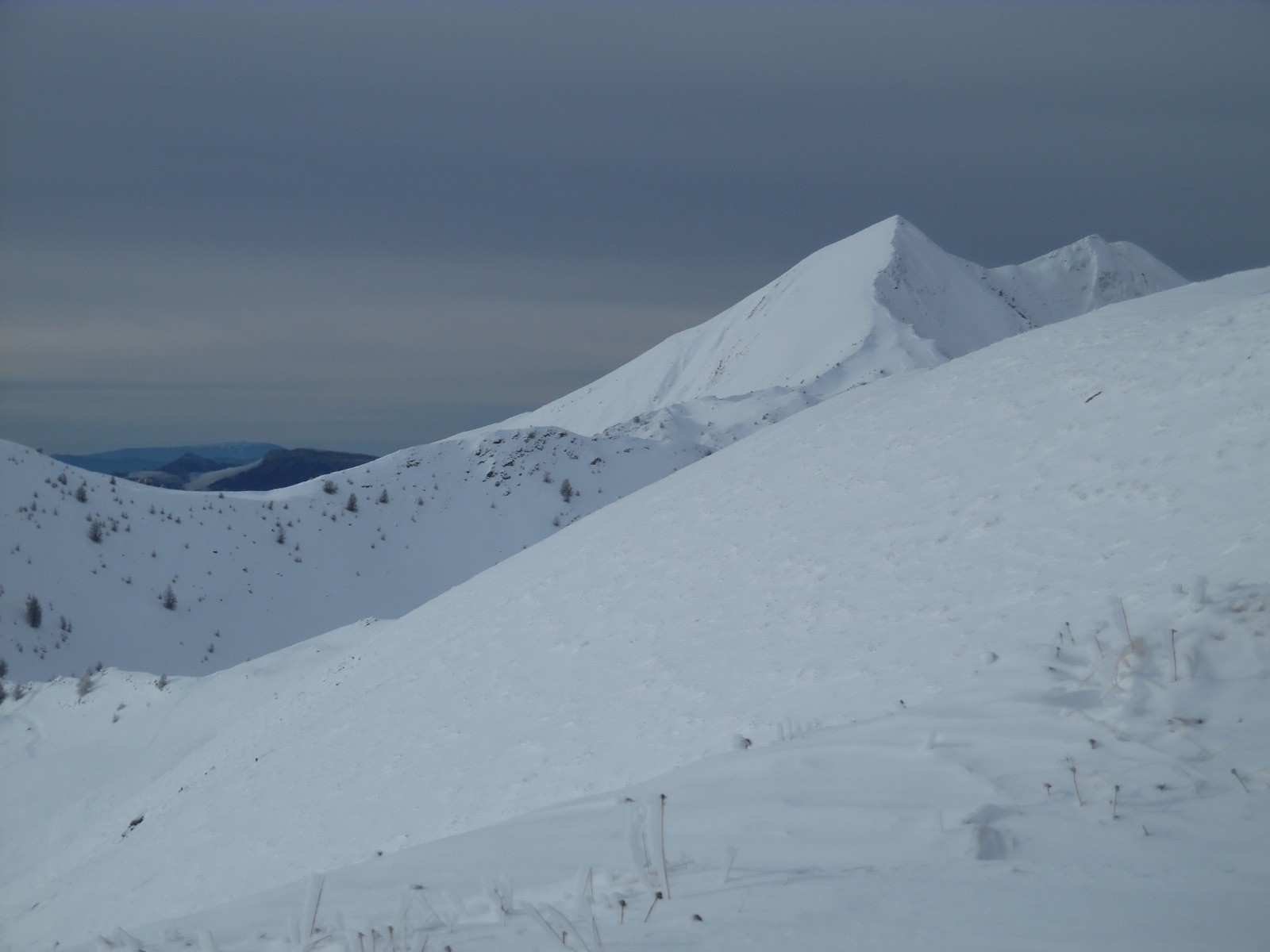 sous le col,la couche augmente et un dernier coup de sonde :80cm dans le couloir du col et 55cm à 2300m en face nord ....