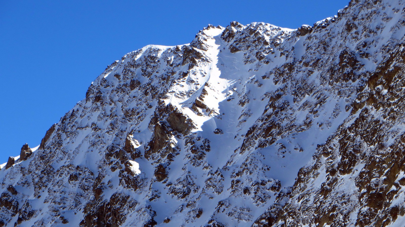 Couloir O du Bel Serre, neige un peu croutée sur fond dur bon grip.