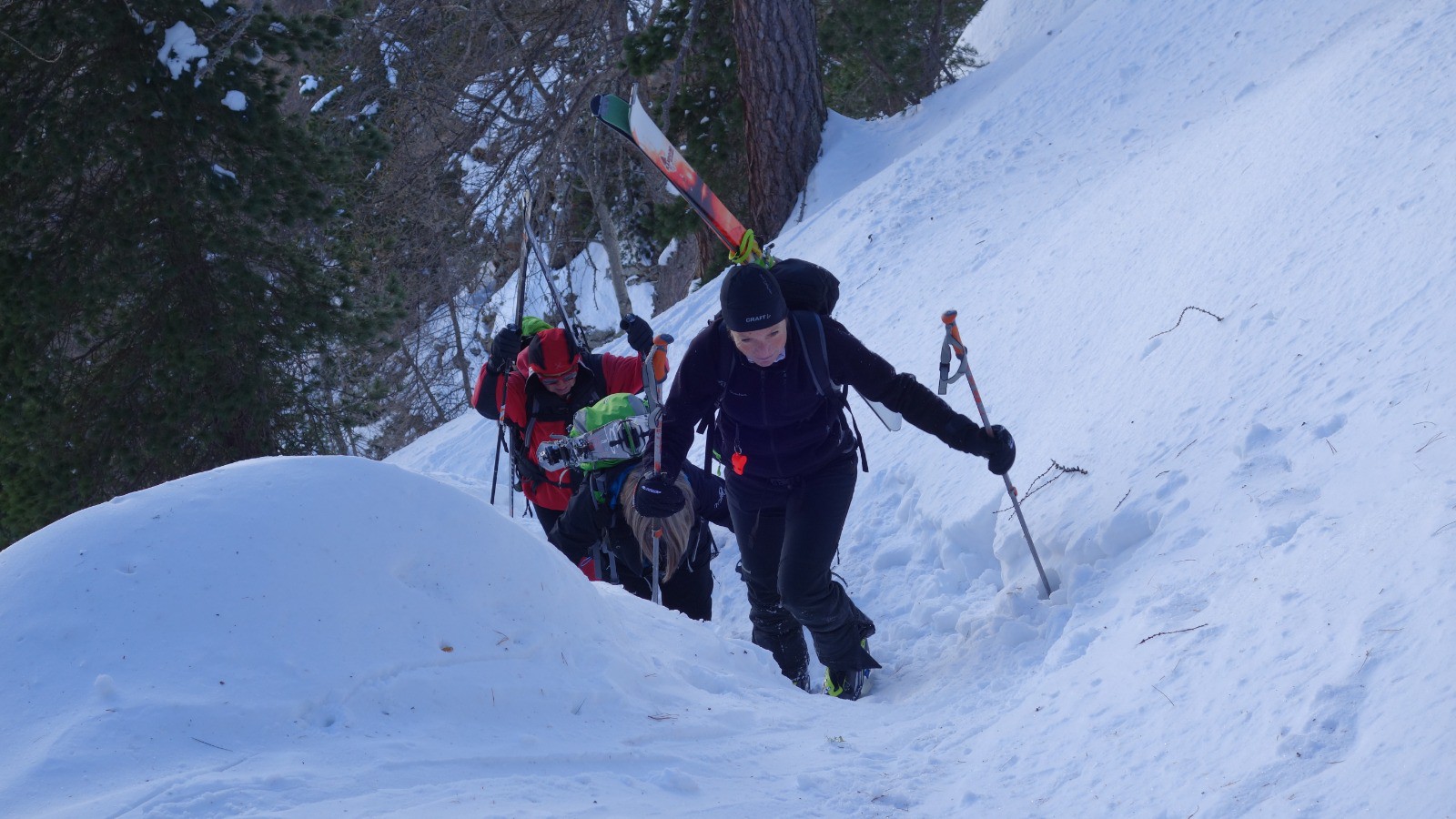 Du coup, depuis le parking de la centrale électrique nous rejoignons St-Grat pour prendre le Vallon de la Mairis. Le départ est raide sur environ 250m avec une neige dure jusqu'à rejoindre le vallon des Verrairiers.