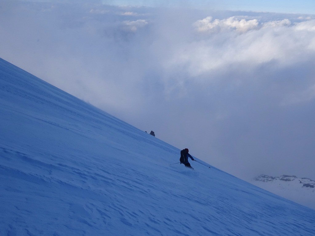 Comme constaté à la montée, la neige est assez rassurante. On ne fait pas les malins car on a quand même croisé de bonnes plaques de glace bleue pendant l'ascension. Mais globalement ça déroule.