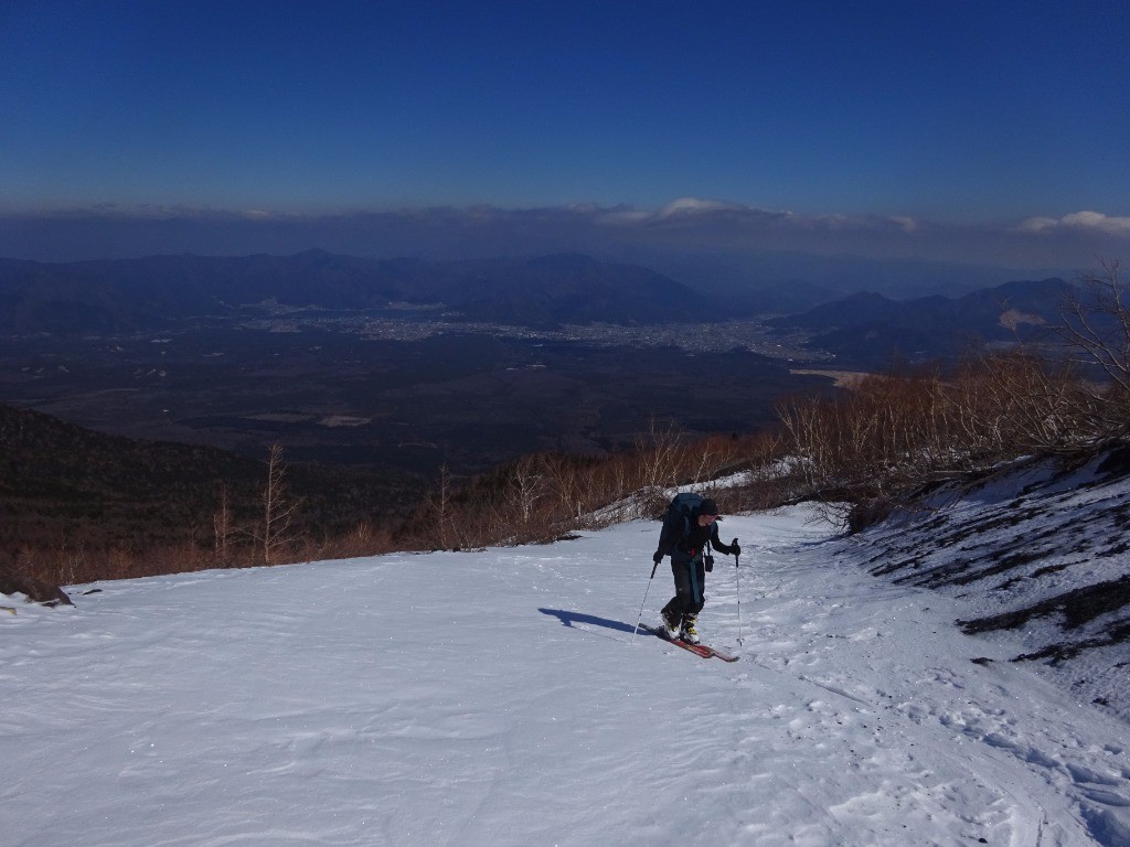 12:30 - On peut rechausser les skis (la pente le permet de haut en bas) dans une neige devenue croûtée.
