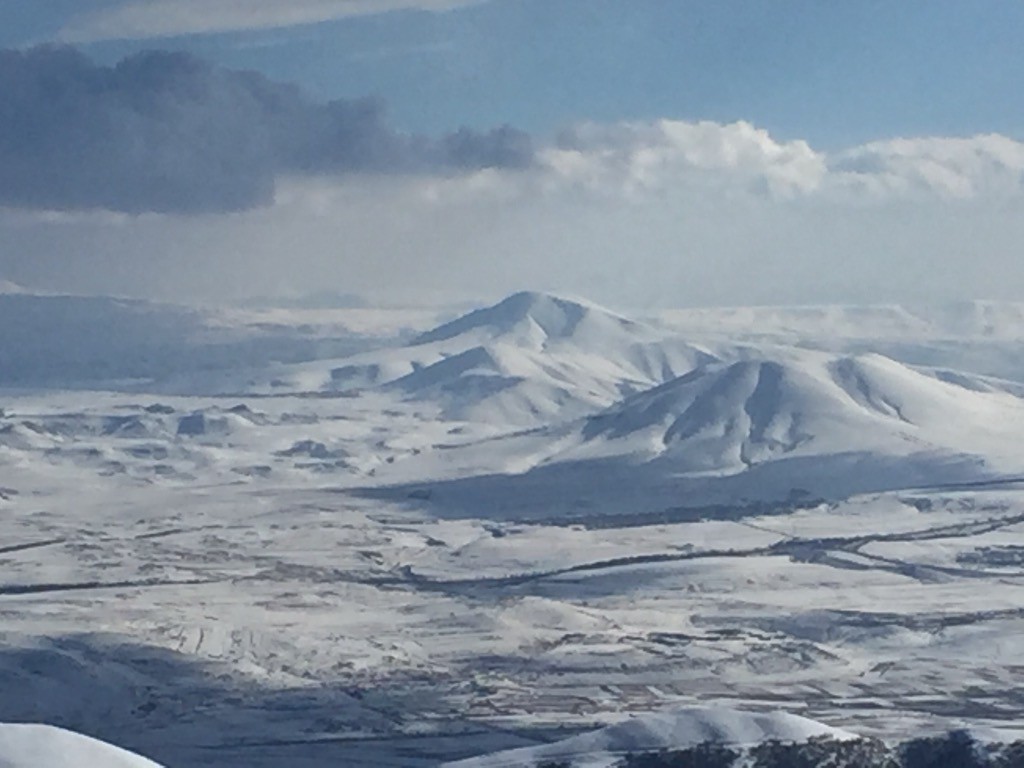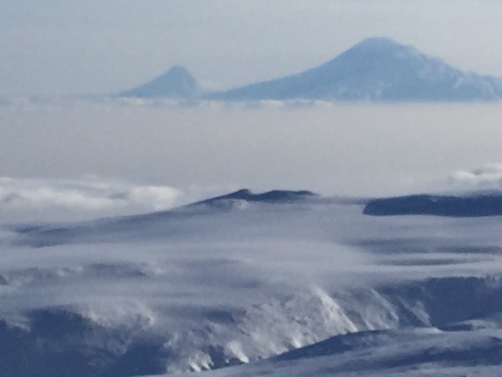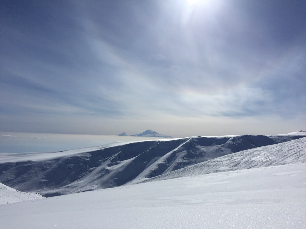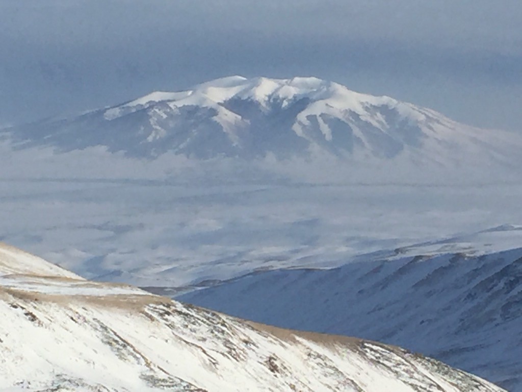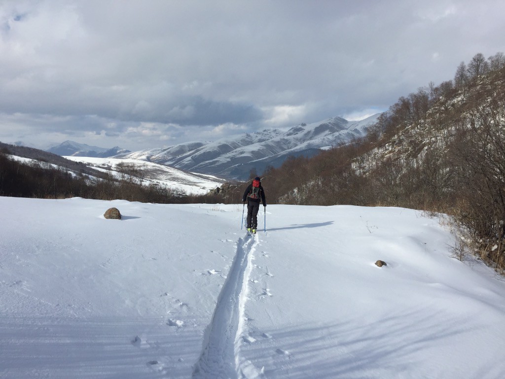 Repérage 1 semaine plus tôt par grand beau avec départ tardif à 11h ! ( mais il faisait -18 degrés à 10h!) en empruntant l’itinéraire 2 de la photo et arrêt à 3500m car trop tard (départ tardif et Seb a dû tout tracer!)et de plus par cet itinéraire il nous aurait fallu dépeauter pour descendre et repeauter . Donc décision de redescendre, de poursuivre notre découverte de l’Armenie et de revenir une semaine plus tard si la météo le permet et d’emprunter un autre itinéraire passant pour les vallons pour ne pas avoir de depeautage dans 1 zone peu enneigée