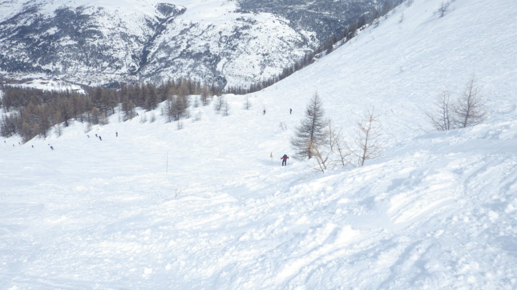 Puisque l'ensemble des pentes est chargé, nous nous décidons pour du hors piste de proximité... tant pis si on croise un peu de monde.