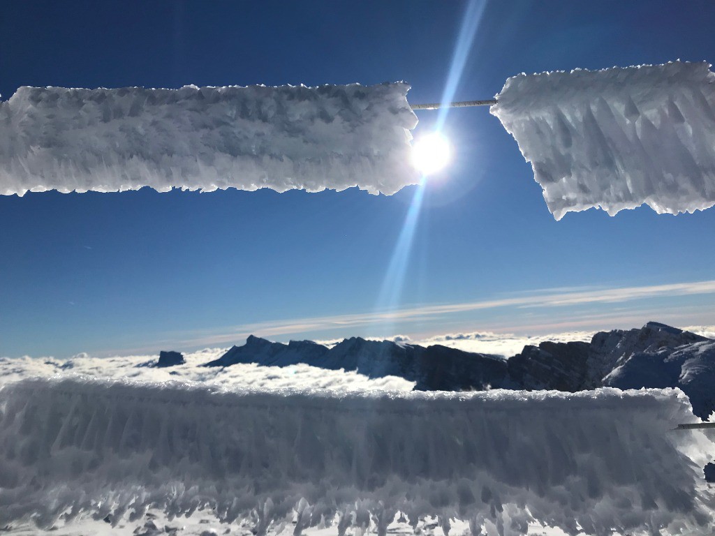grand ciel bleu, pas de nuage durant cette sortie, vent très soutenu sur les crêtes et sommets.État de la route : légèrement verglacé pour accès au parking supérieur de corrençon