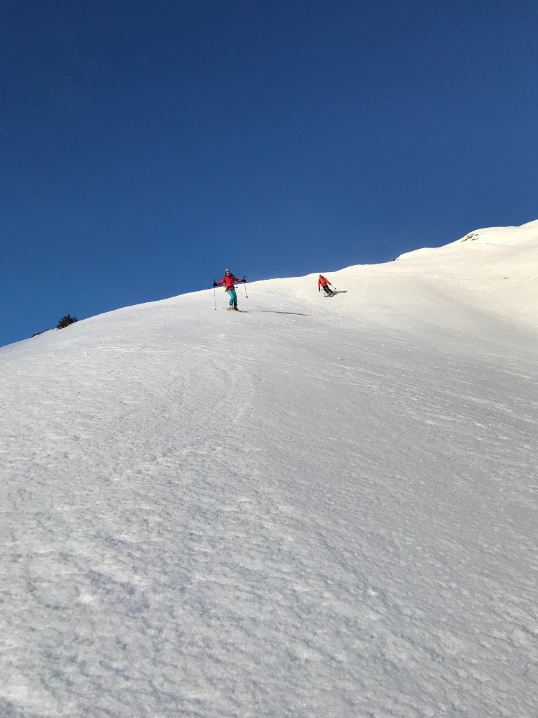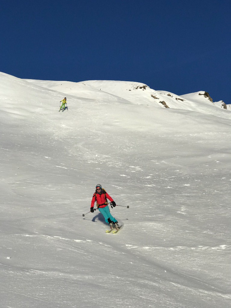 Il faut dire que nous avons eu la chance d'être briefés par Valérie, du gite Pollen, qui nous a recommandé cette combe "sauvage" du Jerbois, où les conditions étaient apparemment au top, et qui permettait d'aller jusqu'au Roc.