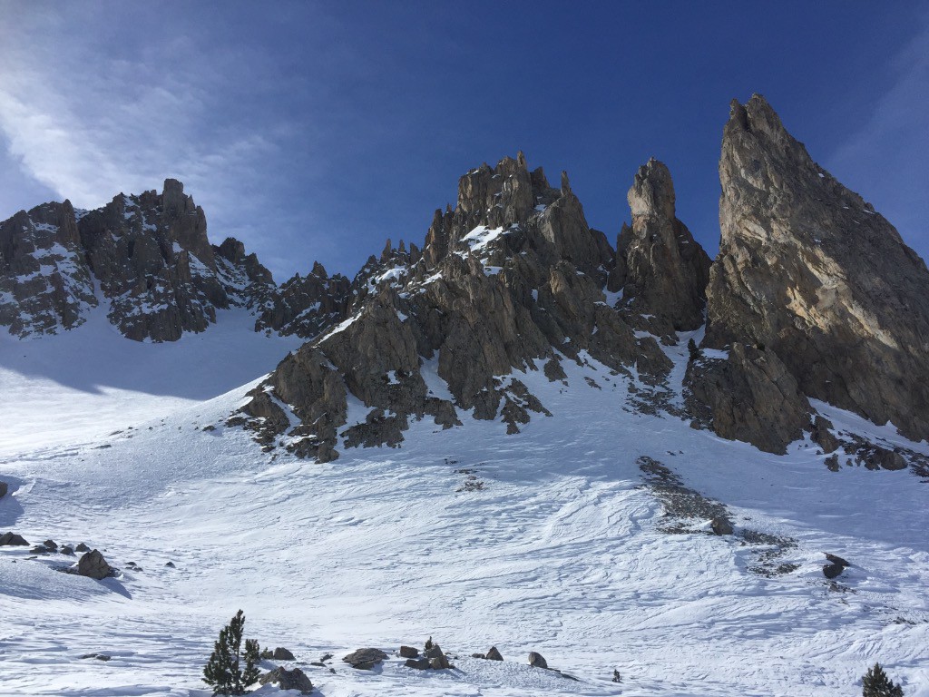 Nevache-Chardonnet-casse pinière en AR- couloir NE de la Crête du Diable