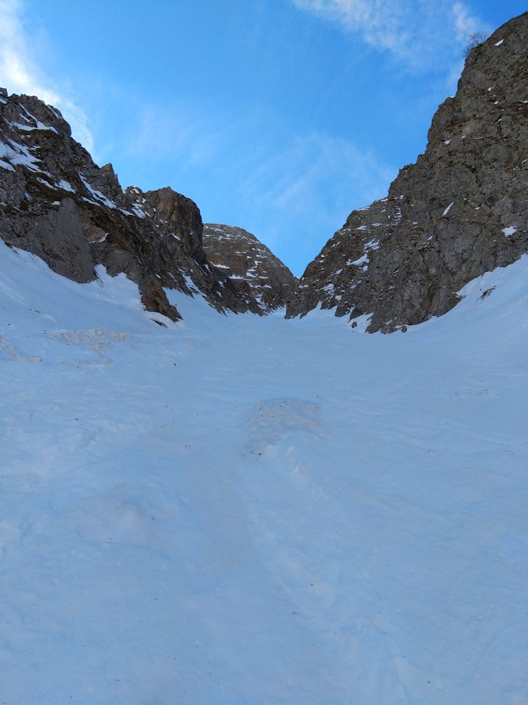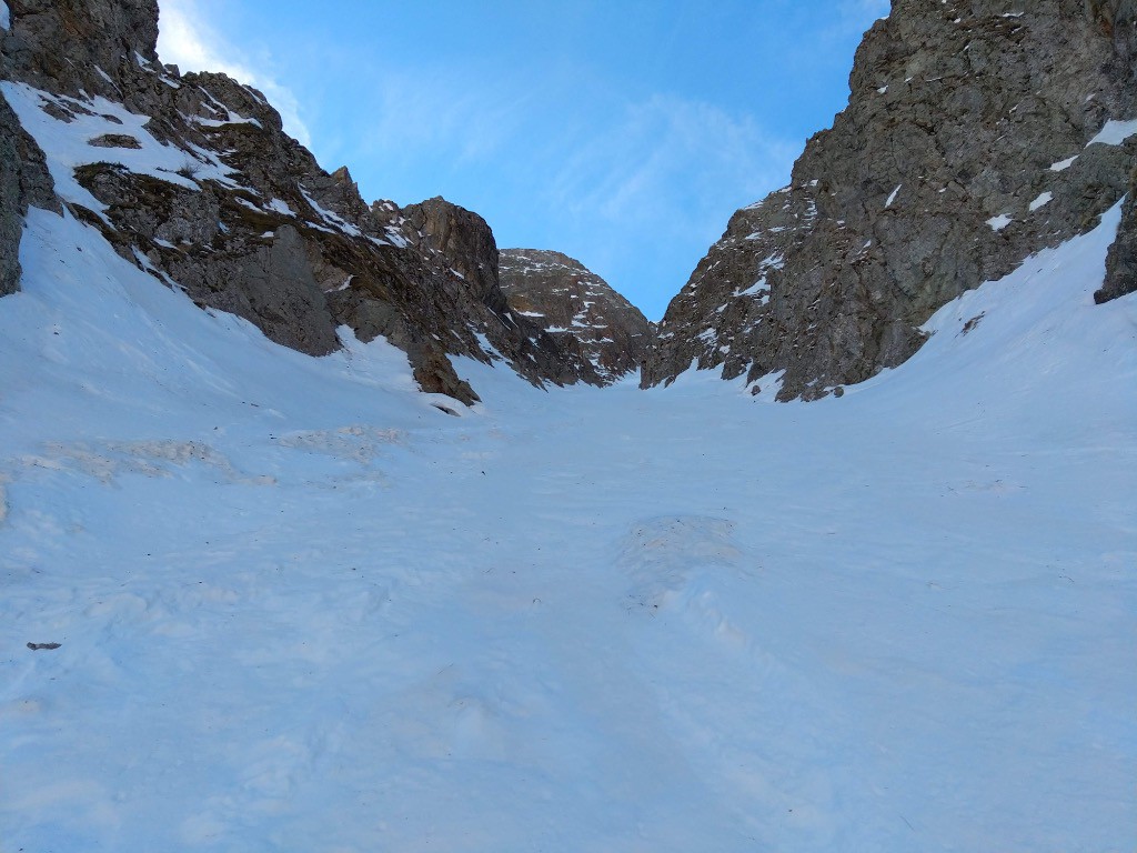 Sinon conditions pas top top. Il y a pas mal de petite pierres dans le milieu du couloir. Et une petit coulée sur 100m pas facile à skier. Sinon c’est quand même bon de faire une pure ligne comme sa ;)