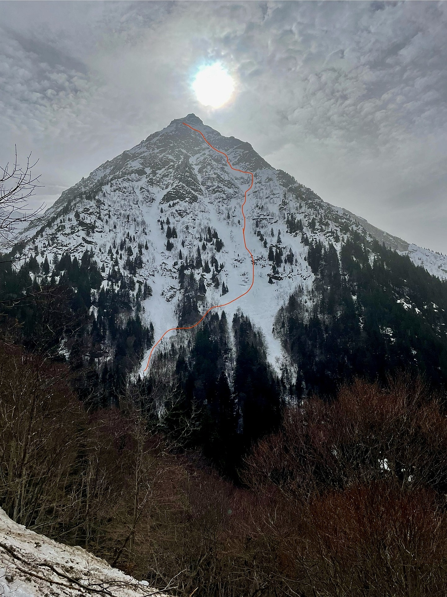 Pyramide parfaite avec une grande face Nord oubliée présentant un couloir raide et soutenu. Très solide 5.2.