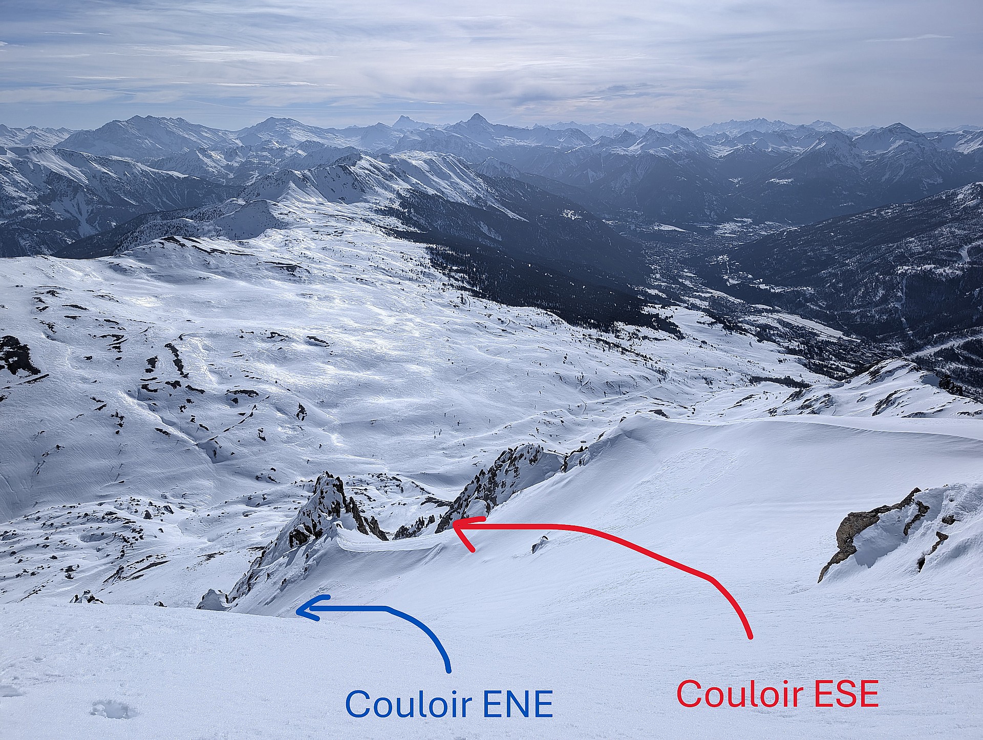 Descente 1 - Couloir de la face Est (ENE, étroiture ou ESE) suivant décaillage