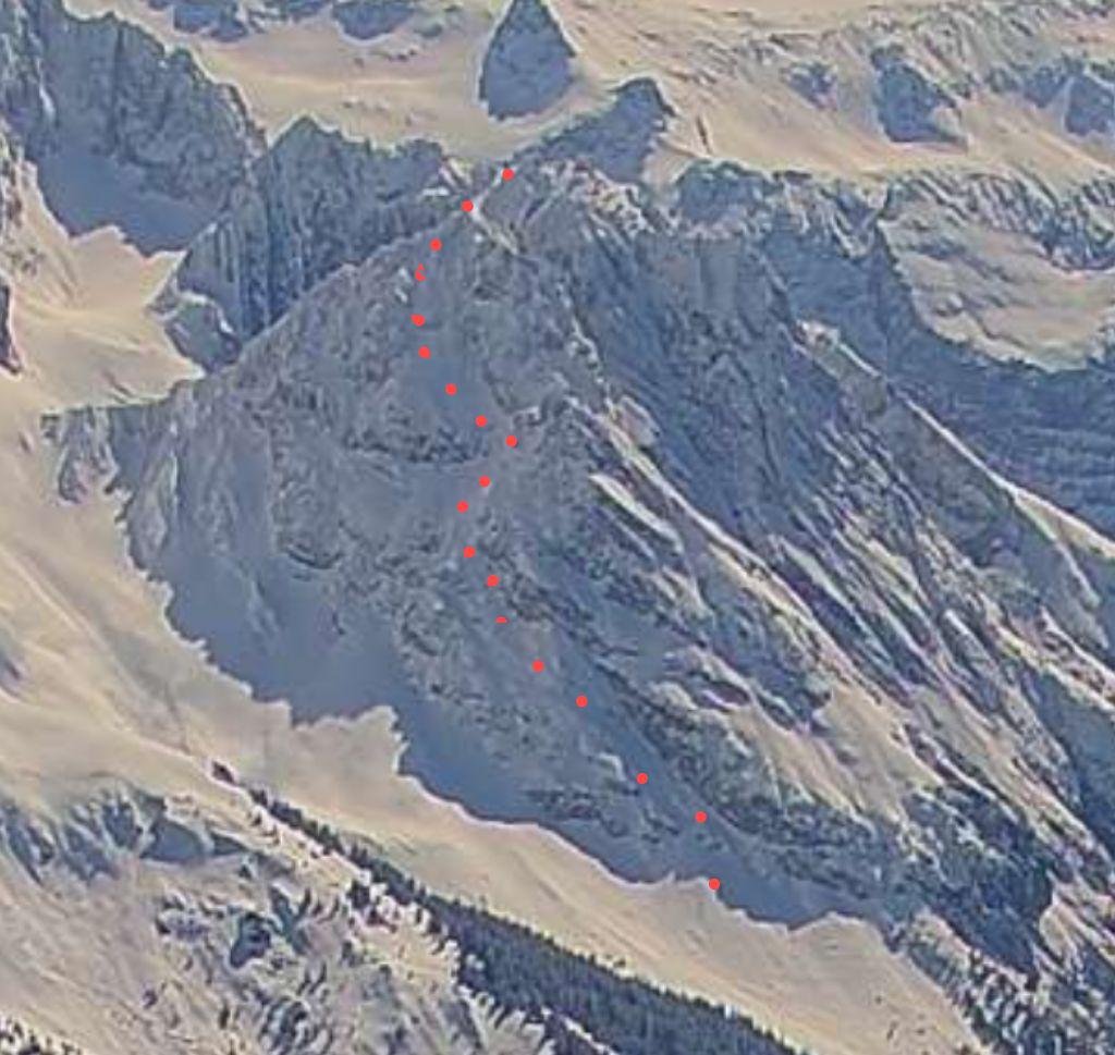 Une face teigneuse dont les moments de grands skis sont entrecoupés de crux cotons, ou l'inverse