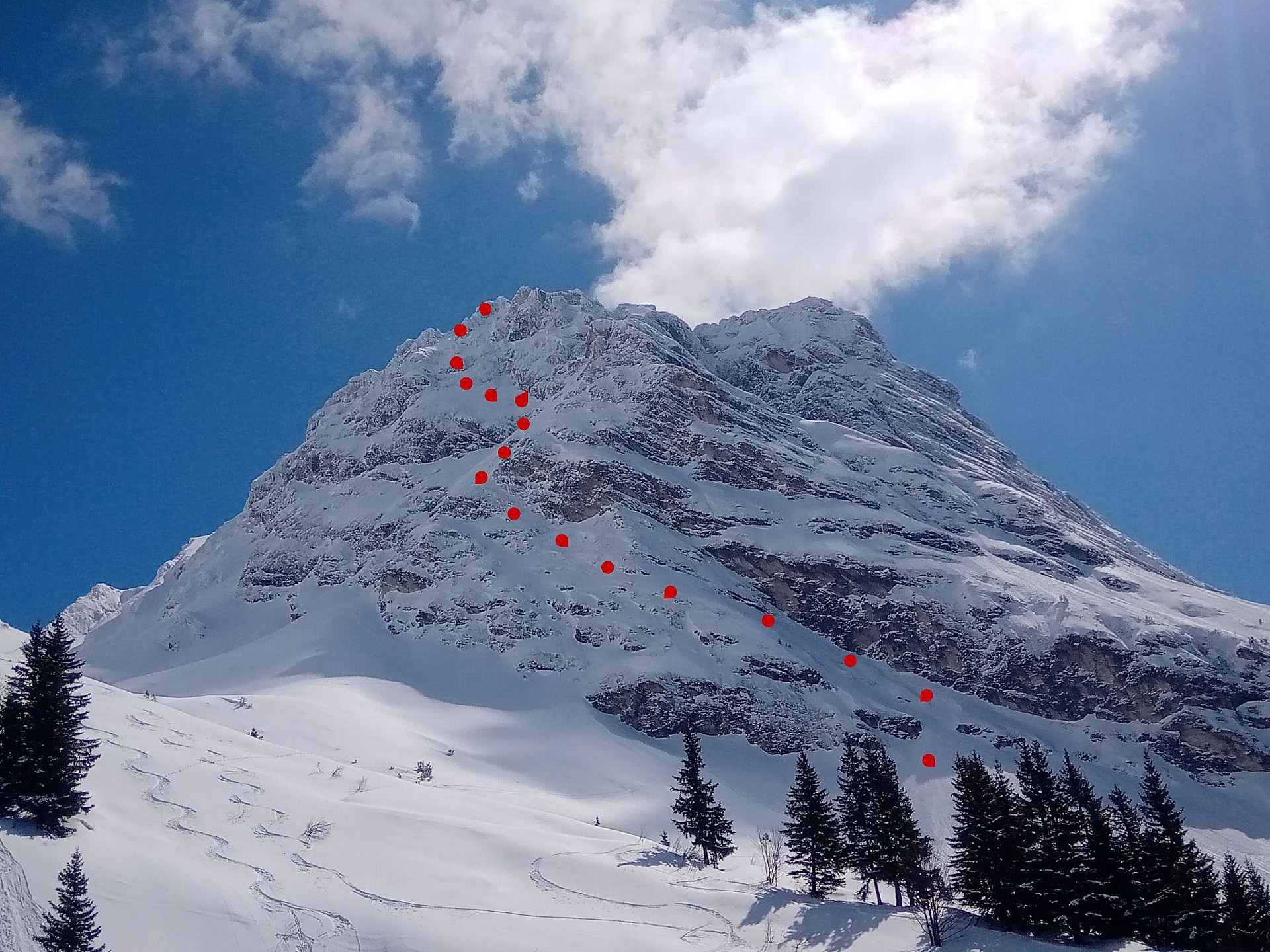 | Météo/températures : Grand beau, frais dans la face en nord, bon au soleil, sans excès, pas de vent. Conditions d'accès/altitude du parking : ras, noir Altitude de chaussage/déchaussage : 10' de portage puis neige continue Conditions pour le ski : En nord superbe poudre, en nord raide de la poudre mais aussi faces planes et gobelets sans cohésion, en ouest légère croûte le matin bonne à skier une fois réchauffée, en sud en bas début de moquette un peu collante Conditions nivo et activité avalancheuse : Sluff avec la quantité de gobelet, purge sous les skis en Est/Sud-Est bien réchauffée. | |||