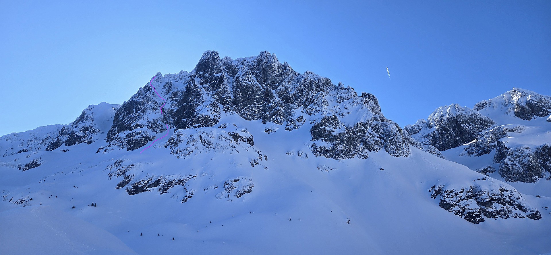 Qualité de la neige mardi : En large Sud neige plus transformée, printanière. Regel nocturne meilleur que la veille, puis rapide humidification suivant la course du soleil. Neige encore sèche en plein Nord au dessus de 2400/2600m environ, avec une neige poudreuse dense en couloirs abrités ou bien souvent cartonnée/sculptée, durcie par la bise du début de semaine. En versants intermédiaires neige temporairement croutée/cassante.